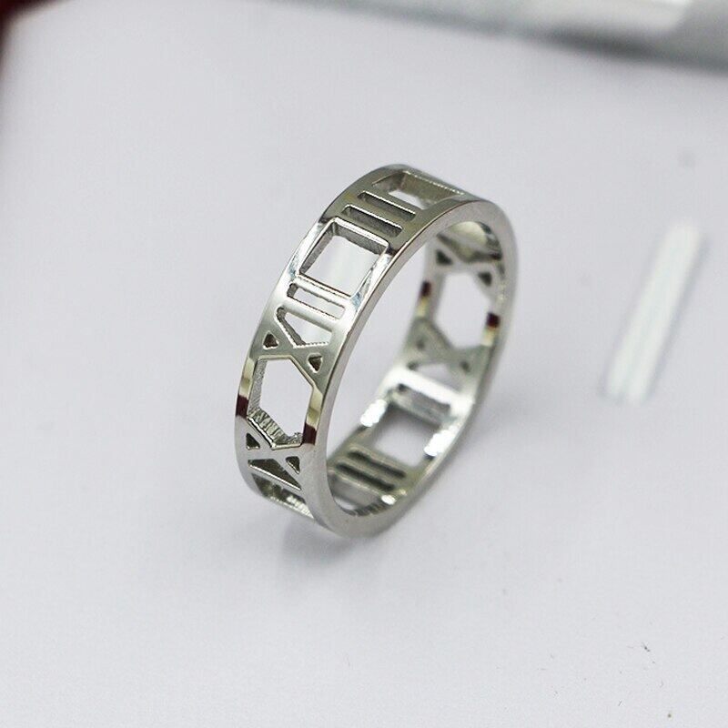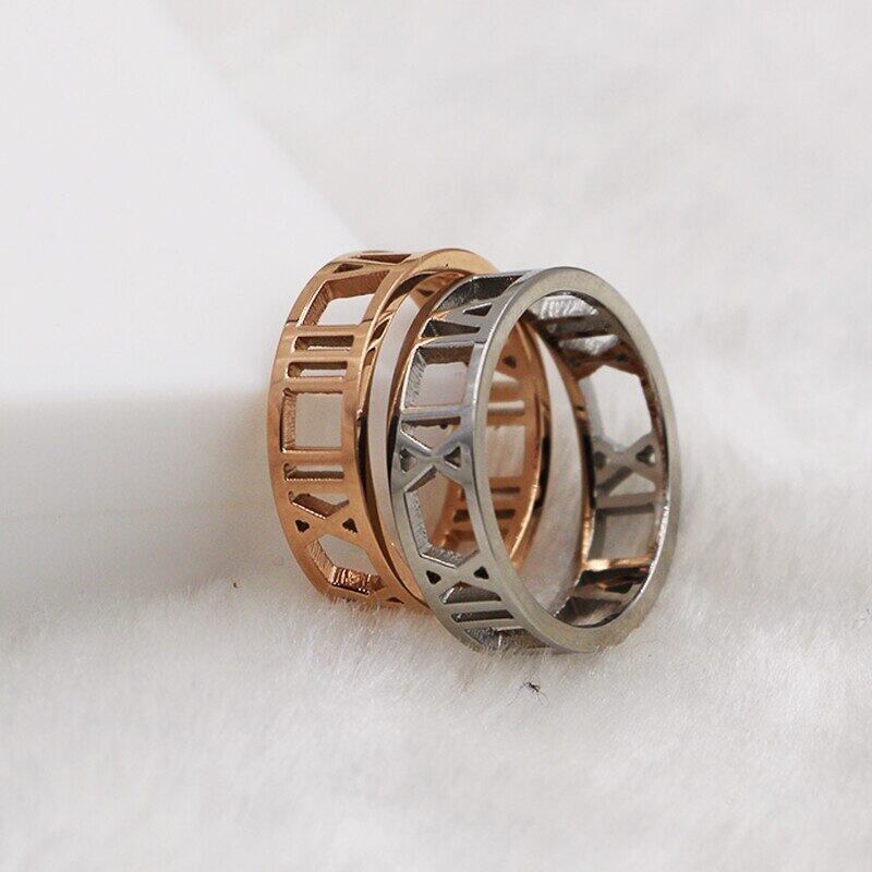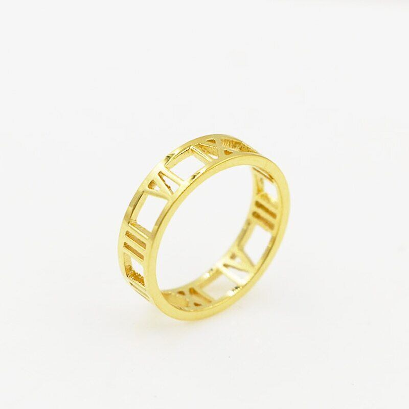 送料無料 クリックジュエリー美しい中空ローマ数字リングステンレス鋼ゴールドカラーリング女性記念日ギフト 指輪 アクセサリー AE0088774861740663