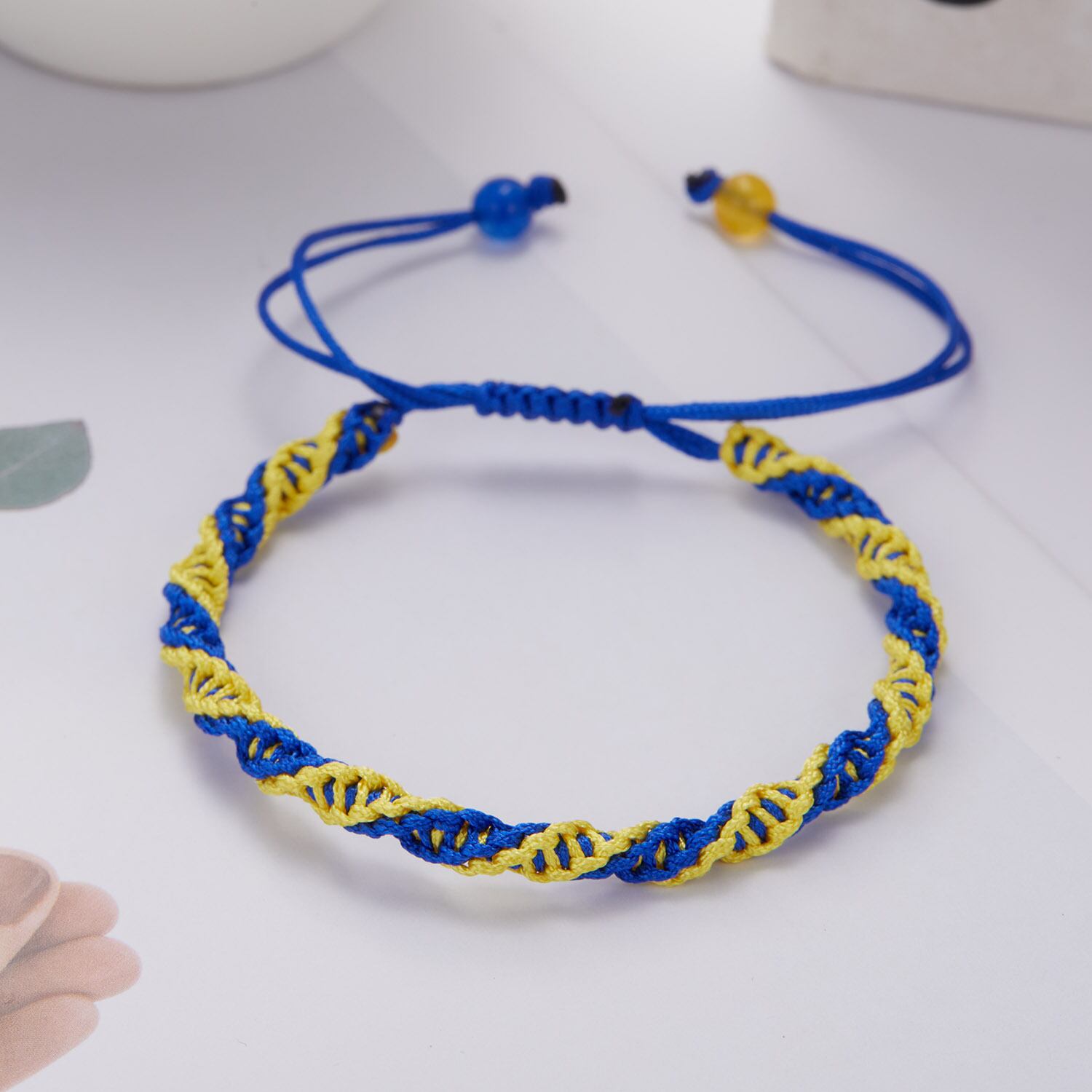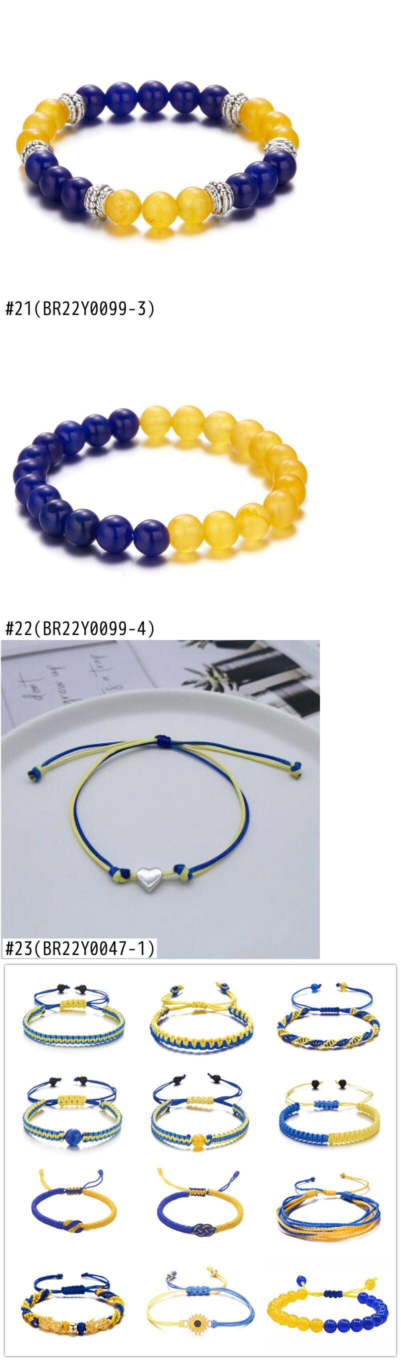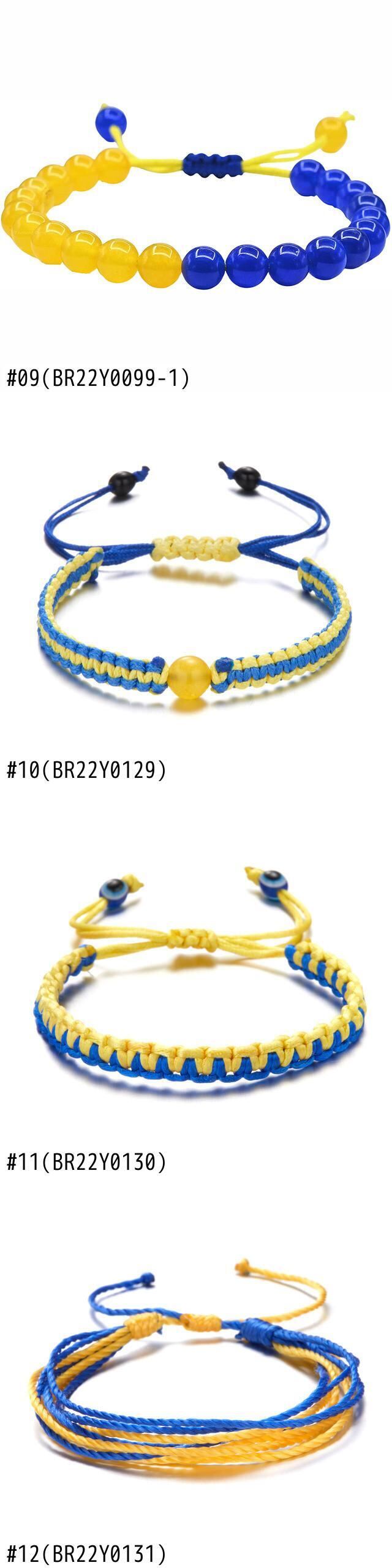 送料無料 チャームイエローブルーウクライナブレスレット女性男性手作りウクライナ旗色織りストリングブレスレットカップルジュエリー アクセサリー AE888838678301556