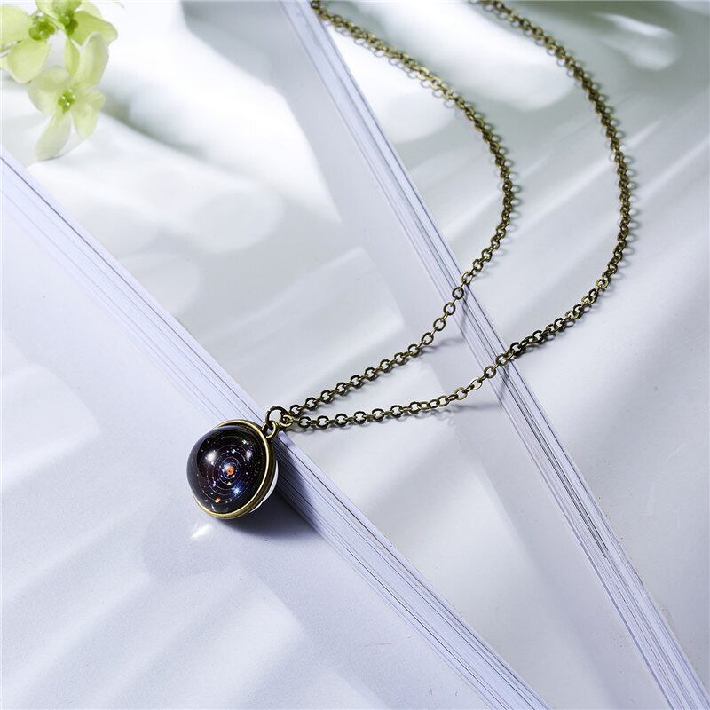 送料無料 ヴィンテージグローインザダークハンドメイドGlボールプラネットユニバーススターリースカイギャラクシーペンダントネックレス女性タイムジェムジュエリー レース ビンテージ アクセサリー AE888883289115062