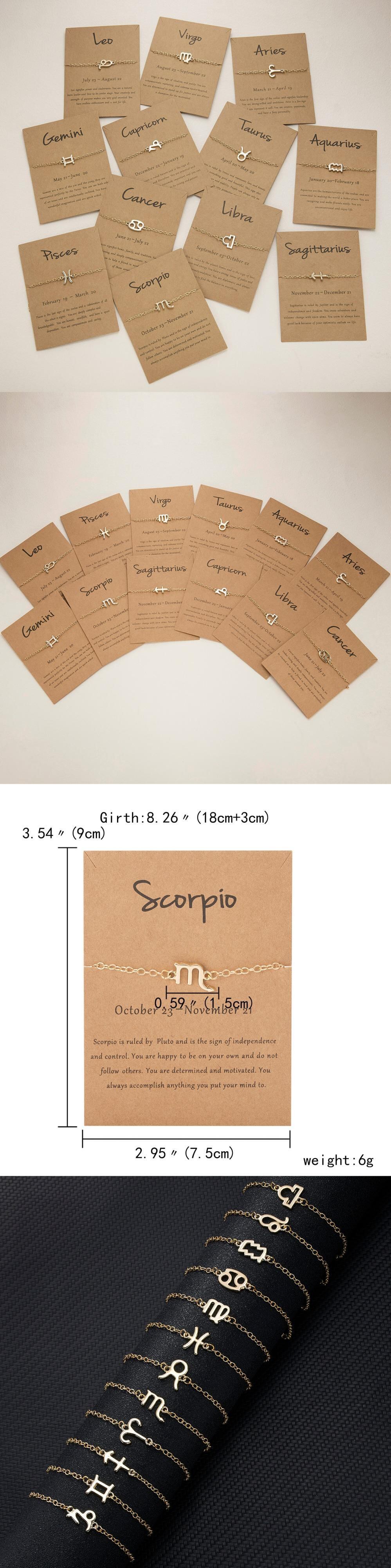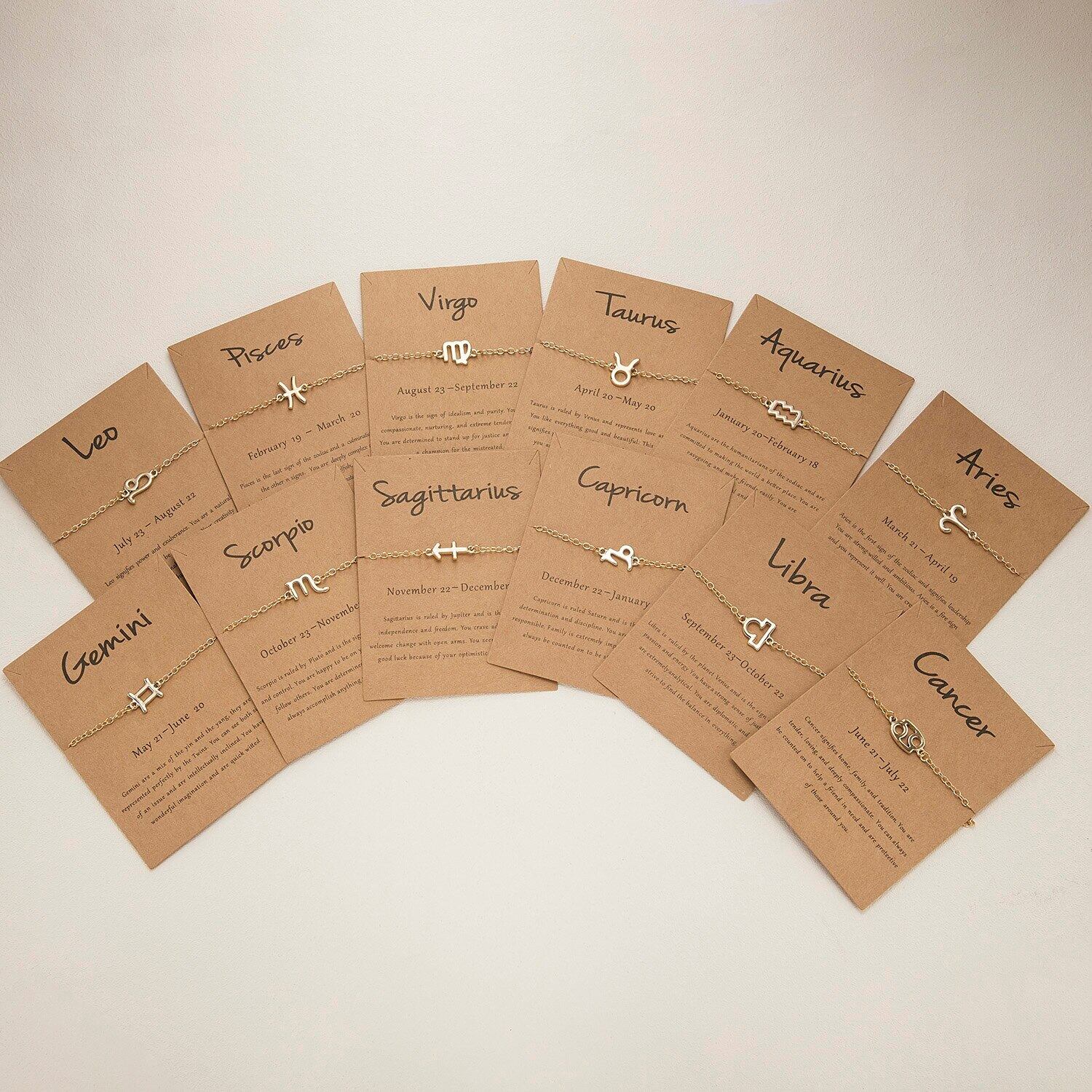 送料無料 星座記号シンボルブレスレットおうし座がんレオ蠍座12星座ウィッシュカードチャーム友情ジュエリー誕生日プレゼント アクセサリー AE888877774369150
