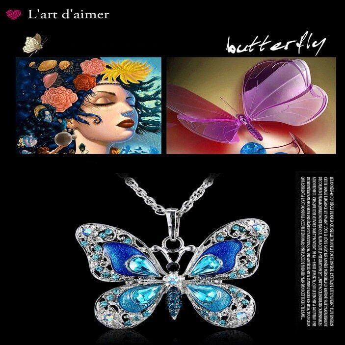送料無料 美しいラインストーンロングバタフライネックレスセーターペンダントネックレス女性ネックレスペンダントサスペンションシルバーカラージュエリー レース 銀 アクセサリー AE888827450050404