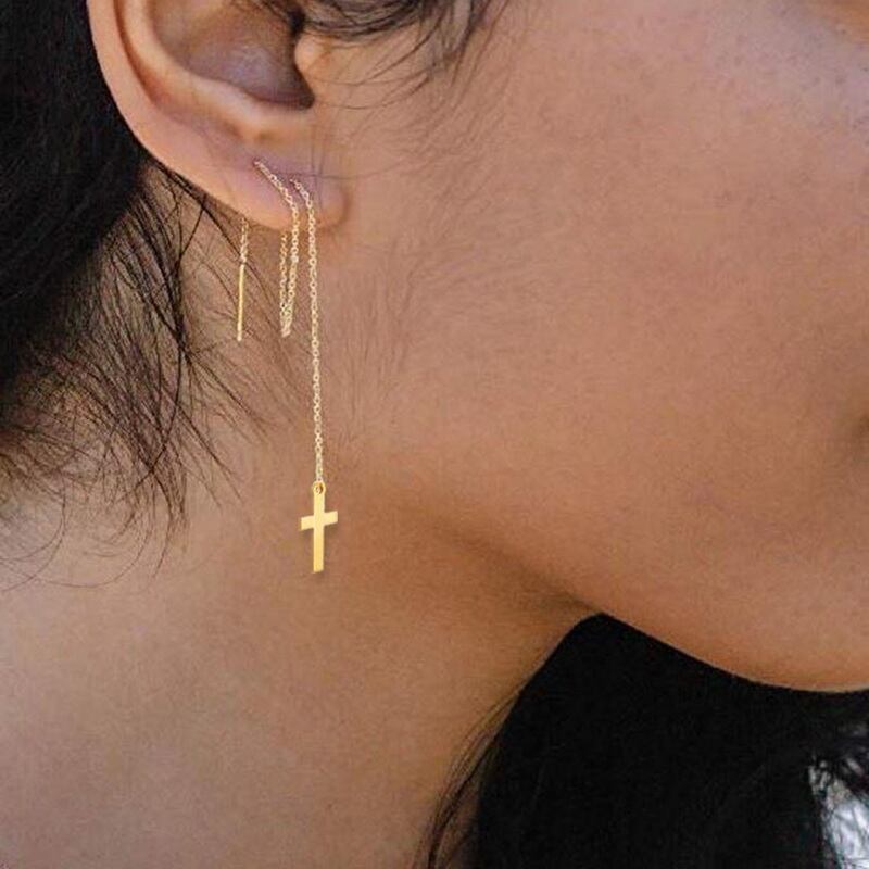送料無料 クリエイティブクロスロングイヤリングレディースシンプルイヤーラインスティックピアスゴールドカラージョーカーイヤージュエリーアクセサリー 指輪 アクセサリー AE888853216772694