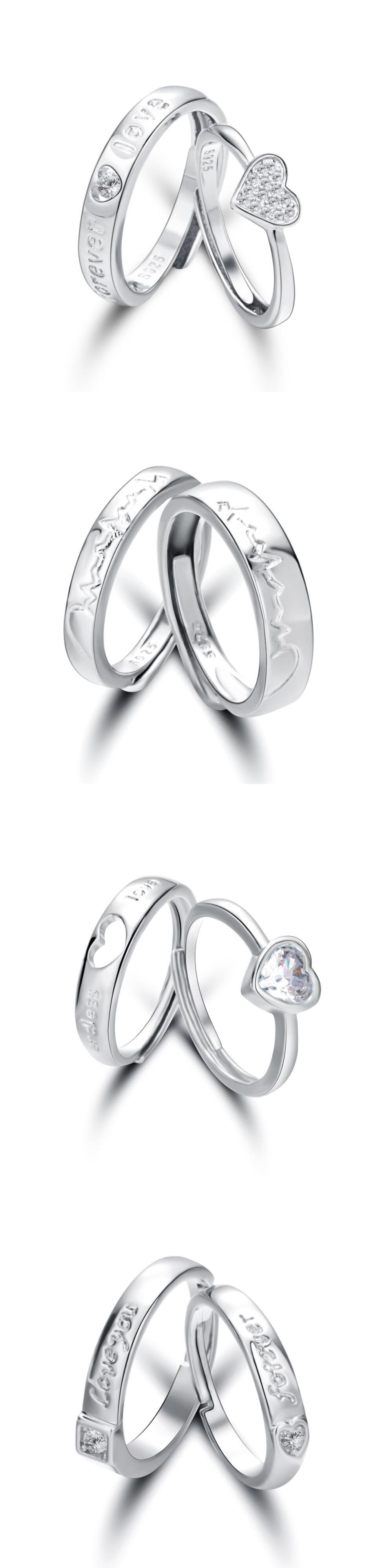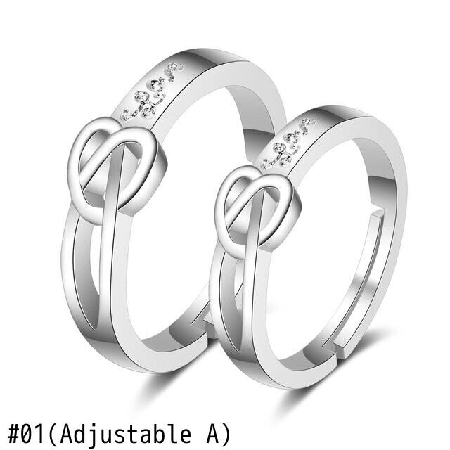 送料無料 シルバーカラーマイクロ象眼細工ジルコンカップルリング女性男性調節可能なリング愛好家ロマンチックな約束の婚約結婚式のジュエリー アジャスタブル 指輪 銀 アクセサリー AE888870336095717