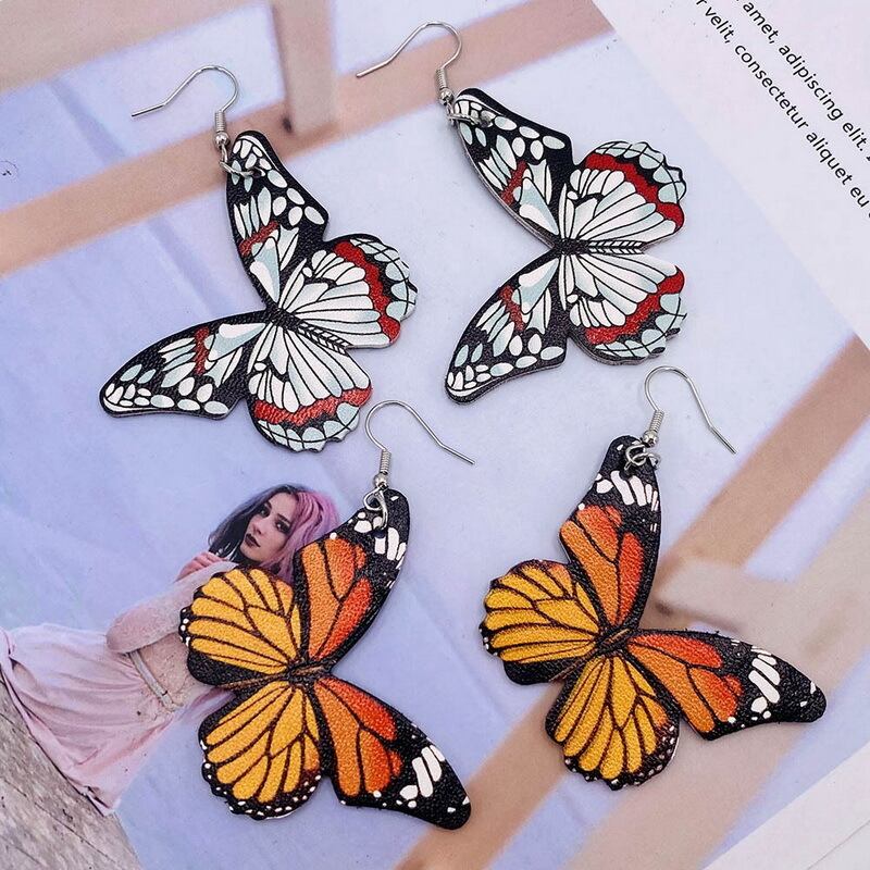 送料無料 シミュレーションカラフルなバタフライレザー合金フックイヤリングジュエリーレディースイヤリング2020 指輪 アクセサリー AE88882460082809