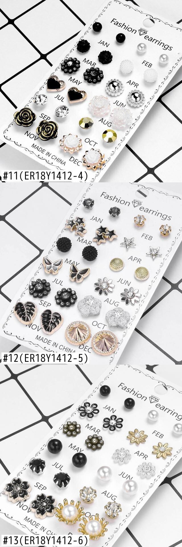 送料無料 12ペア/セットバタフライハートピアスセット女性アニマルフクロウビー幾何学的オパールラウンドスタッドピアスガールシンプルパーティージュエリー イヤリング 蛋白石 リング 指輪 アクセサリー AE888844814779478