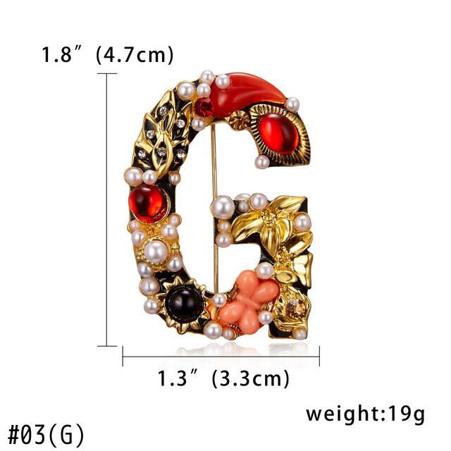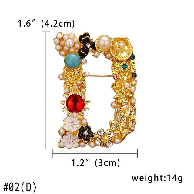 送料無料 リンフーイニシャルネームキャピタルレターブローチレトロジェムパールクリスタルエナメルブローチピンレディース紳士服デクロテーション 真珠 アクセサリー AE888825395326744