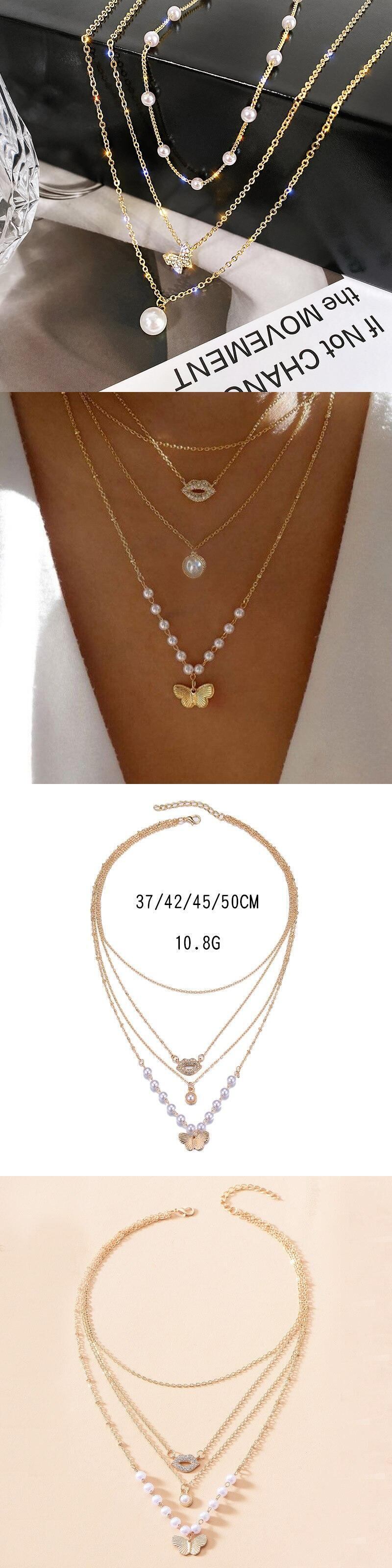 送料無料 トレンディな多層バタフライパールラインストーンネックレス女性ムーンスターチョーカーネックレス2021トレンドジュエリーギフト レッド レース 真珠 アクセサリー AE888826789046149