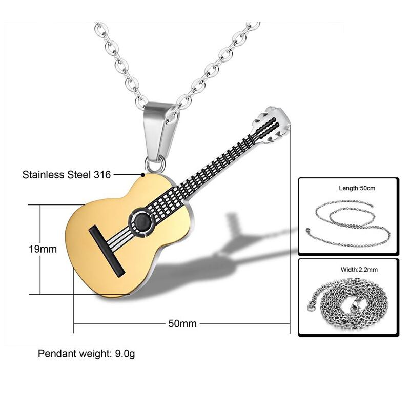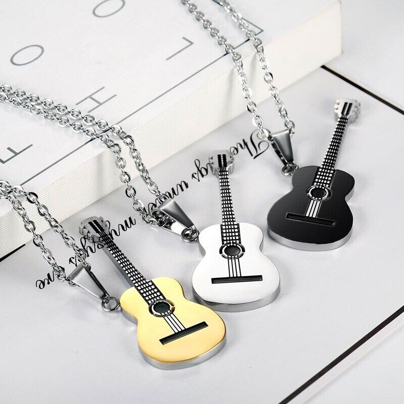 送料無料 ギターシェイプ316Lステンレススチールネックレスメンズペンダントヒップホップロックスライドミュージックエレメントチェーンネックレスジュエリー レース アクセサリー AE888846950394600