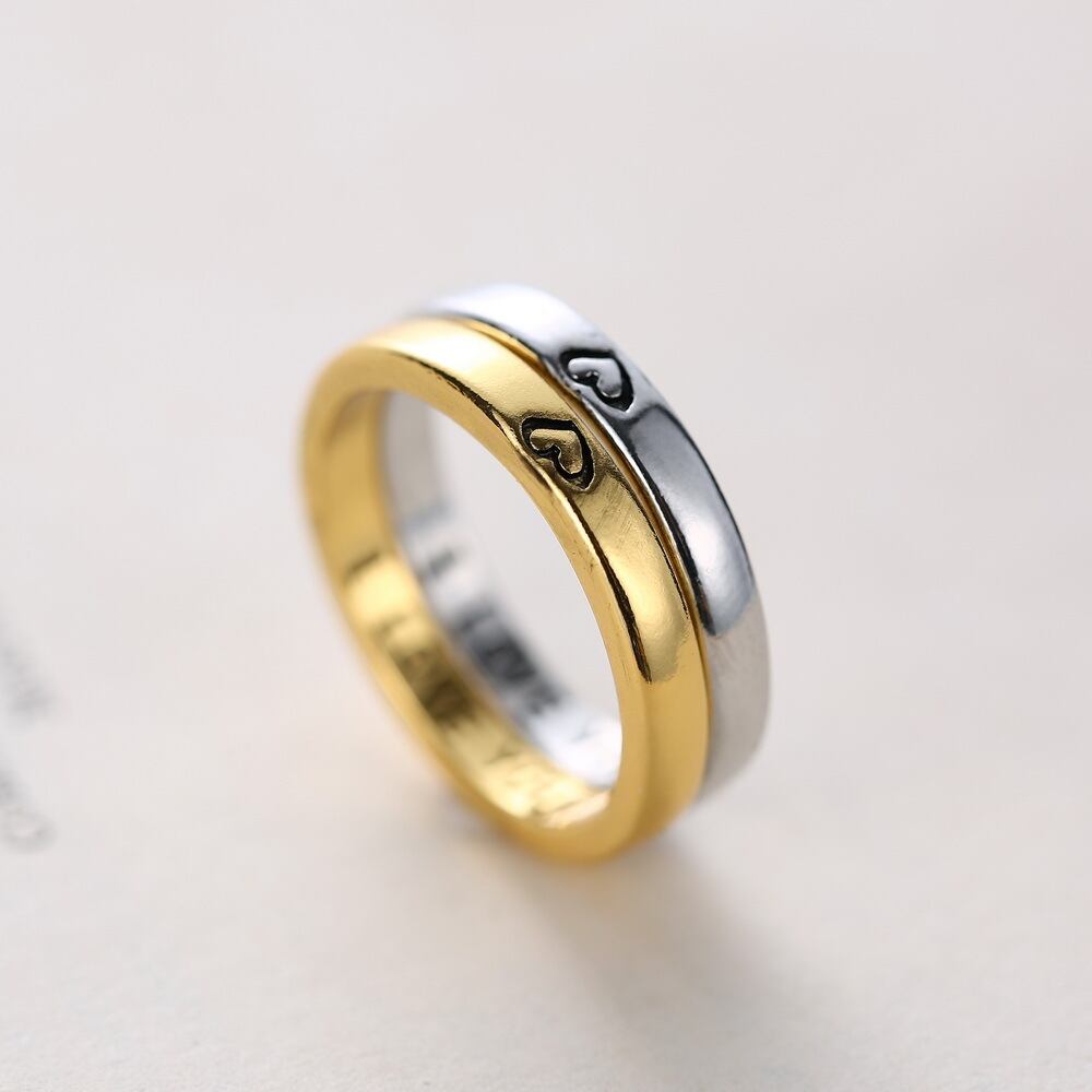 送料無料 ILOVEYOUステートメントリングゴールドシルバーカラーハートシンボルリングカップルフレンドシップジュエリーウェディングパーティーアクセサリー 指輪 銀 アクセサリー AE888835036009786