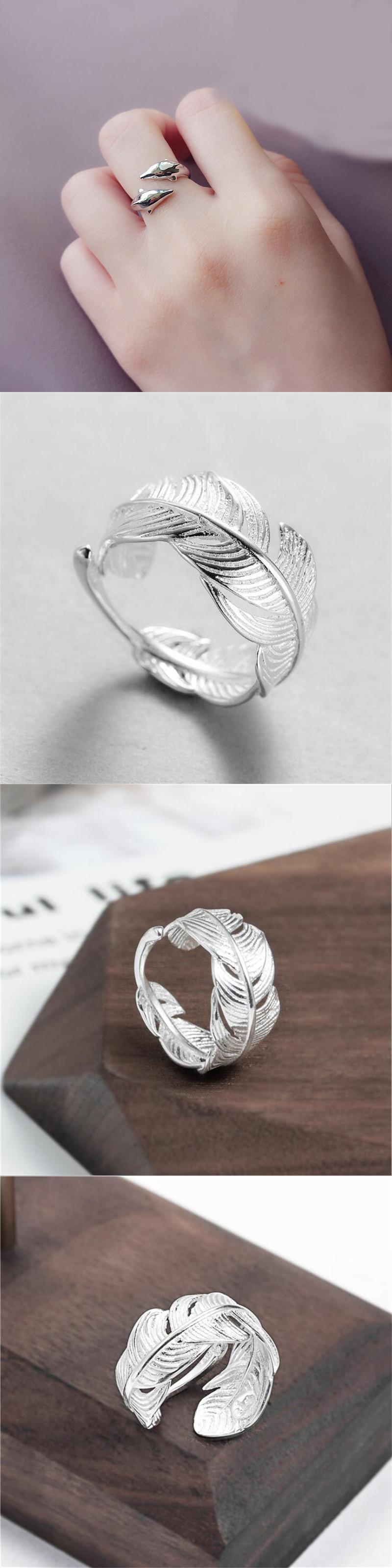 送料無料 女性シルバーカラーラブハグ抱擁アームオープニング調節可能なリングタイドフロージルコンリーフイルカリングジュエリー アジャスタブル 指輪 銀 アクセサリー AE888861764141508