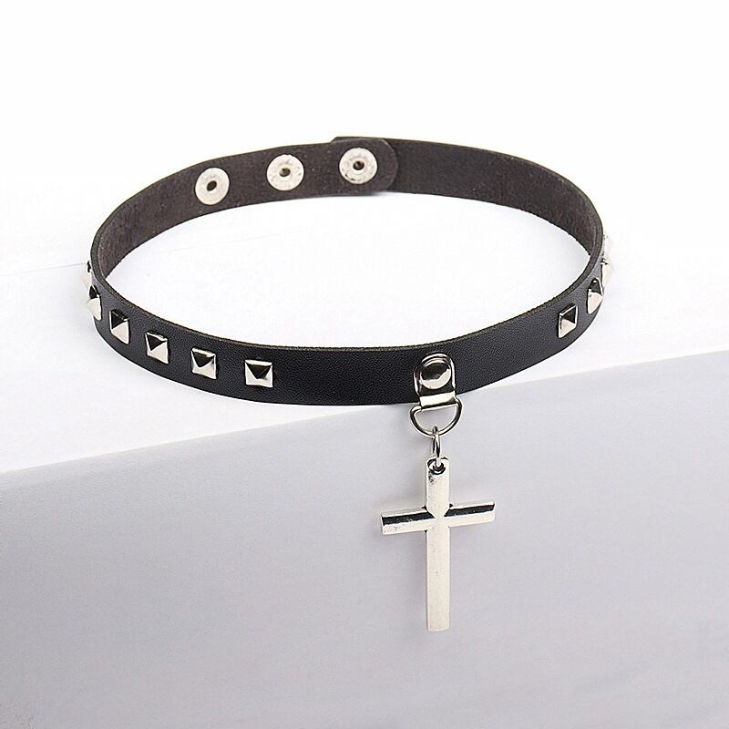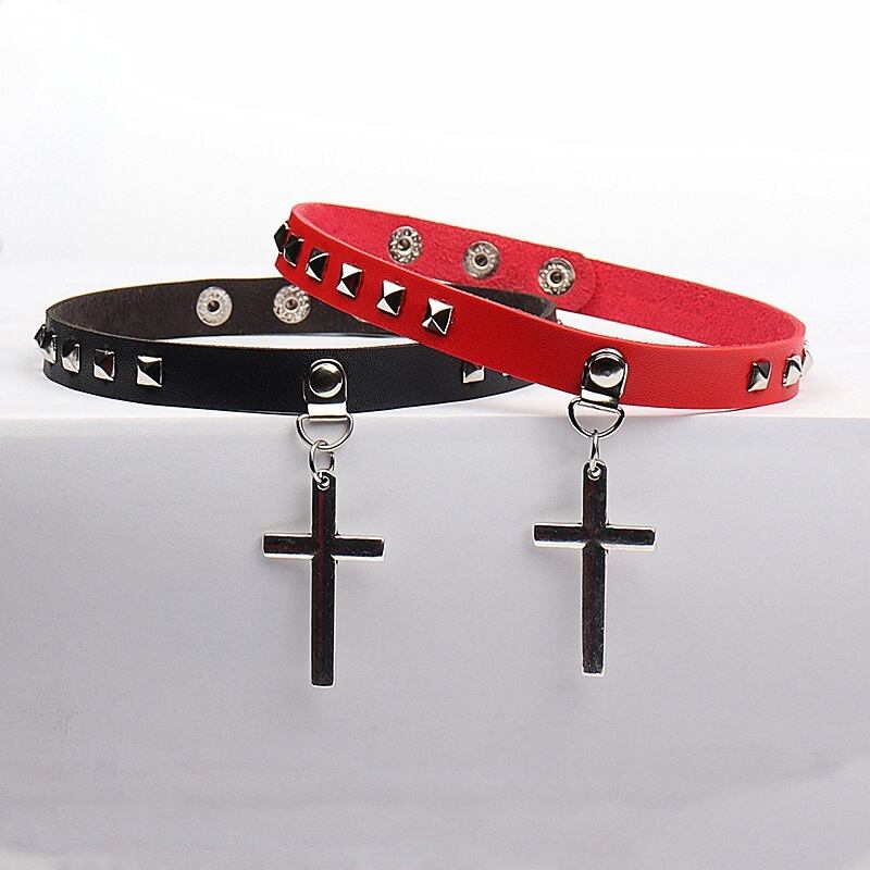 送料無料 パンクPUレザークロスハートラウンドペンダントチョーカーネックレス女性ゴシックカラー鎖骨チェーンガールズパーティージュエリー レース アクセサリー AE888837205724749