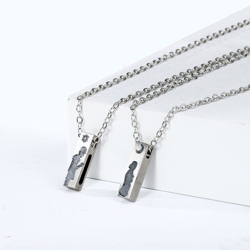送料無料 2ピース/セットマグネティックカップルネックレスウェディング花嫁花婿ジュエリーサンムーンネックレスアニバーサリーベストフレンズ レース アクセサリー AE888842525408272