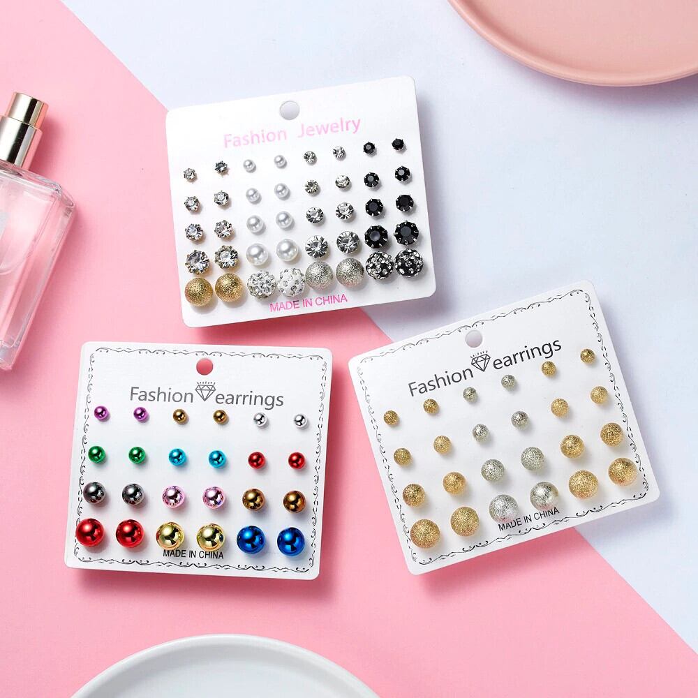 送料無料 12ペア/セット女性ステートメントクリスタルスタッドピアス女性ピアスシミュレートされた真珠の花のイヤリングジュエリー2021 パール 指輪 フラワーデザイン 人工 アクセサリー AE888824640561417