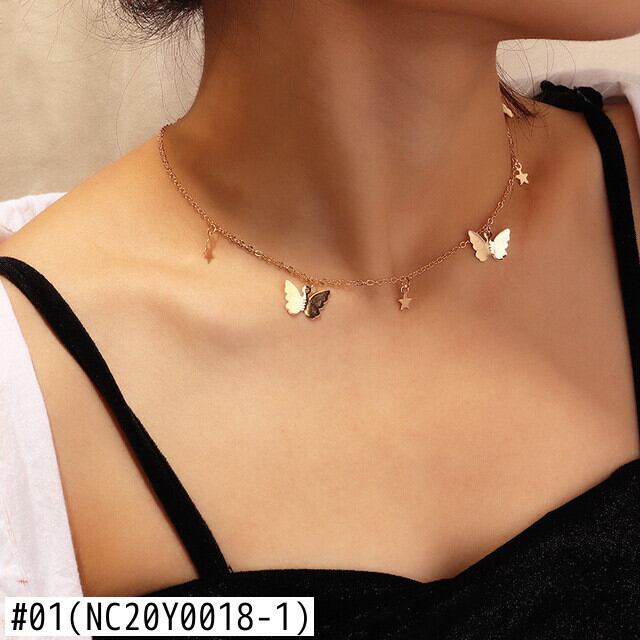 送料無料 ヴィンテージバタフライペンダントネックレス女性シンプルムーンスターチャームチョーカーネックレス鎖骨チェーンジュエリー夏の装飾 レース サマー 夏物 ビンテージ アクセサリー AE888835321474370
