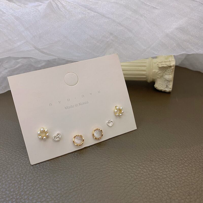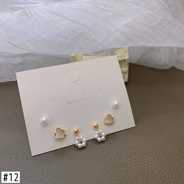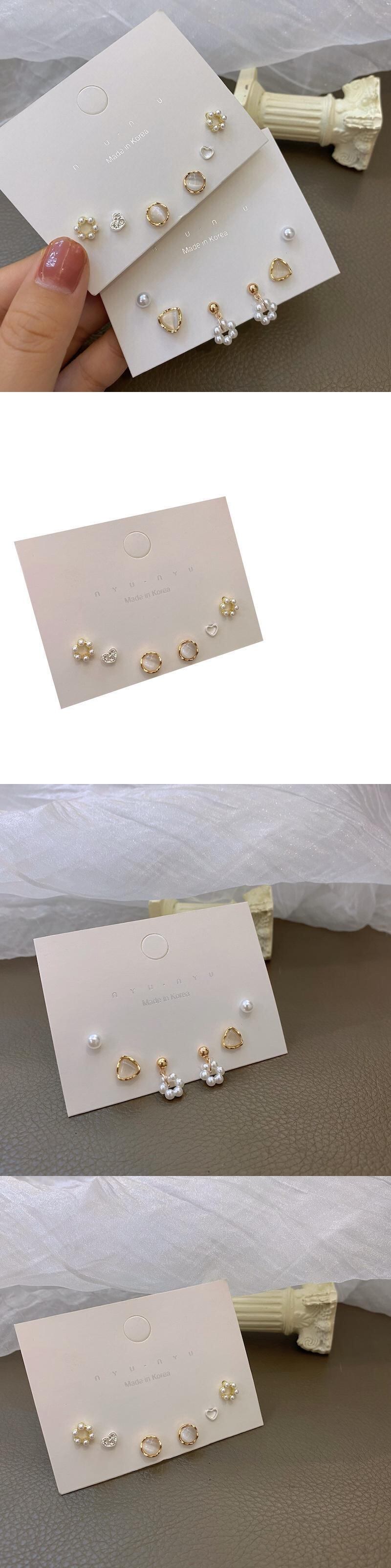 送料無料 シンプルなクリスタルスタッドピアスセット女性パールフラワージルコンピアスガールズパーティーウェディングエンゲージメントジュエリー イヤリング 真珠 リング 指輪 フラワーデザイン アクセサリー AE888835474763599