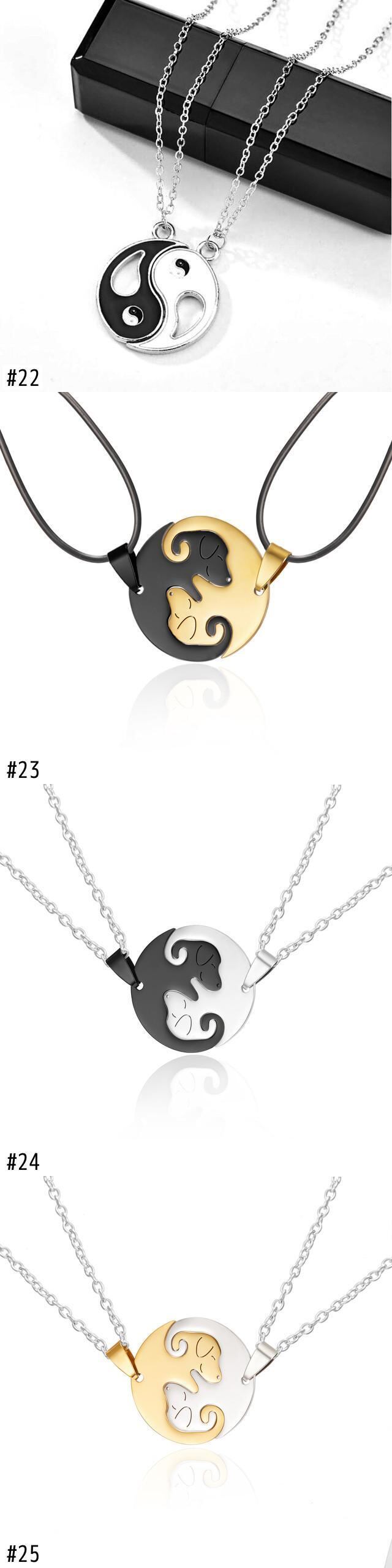 送料無料 2個/セットカップルネックレスラウンドハートキャッツキーロケットベストフレンズペンダントネックレスファミリーラバーズフレンドシップジュエリーギフト レース アクセサリー AE888825647674215