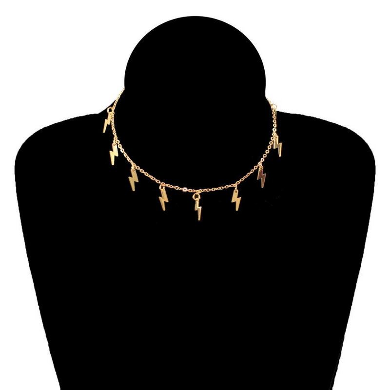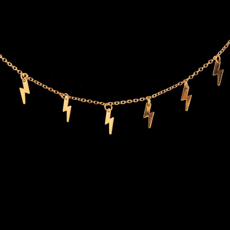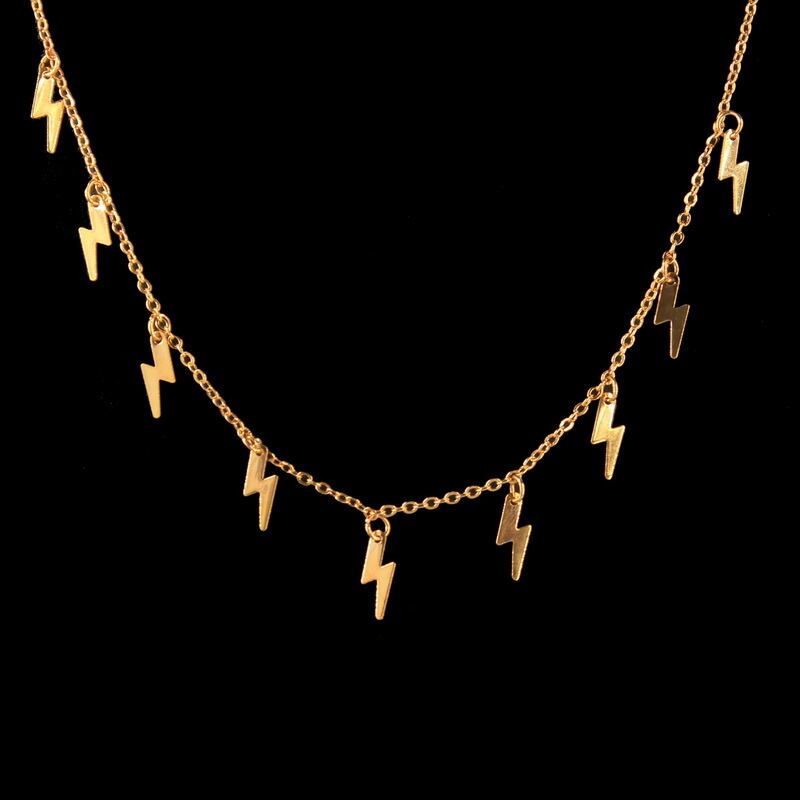 送料無料 クリエイティブライトニングペンダントネックレスレディースガールズシンプルゴールドカラーチェーンチョーカージュエリー自由奔放に生きるクリックステートメントネックレス レース アクセサリー AE888838220529099