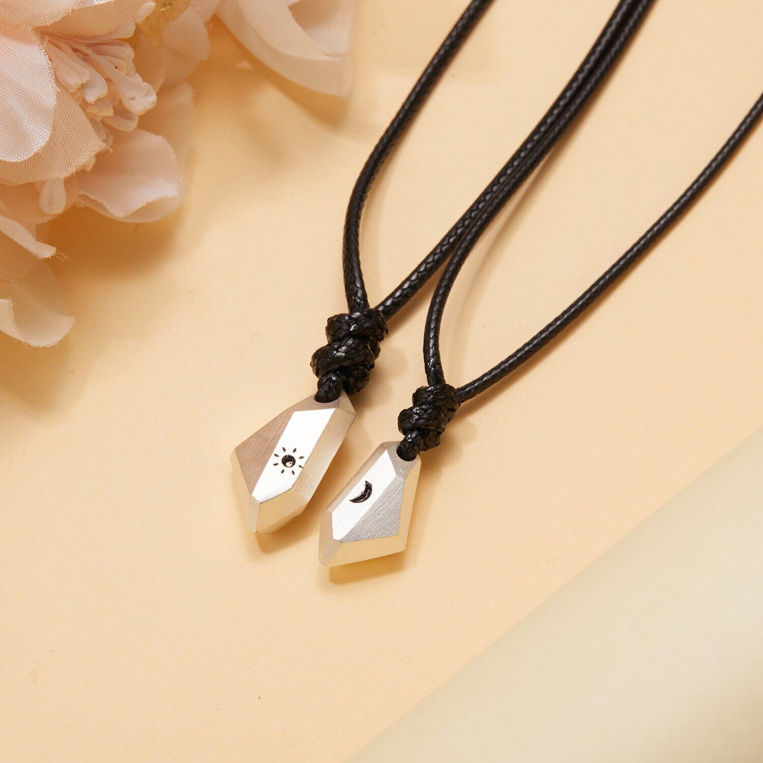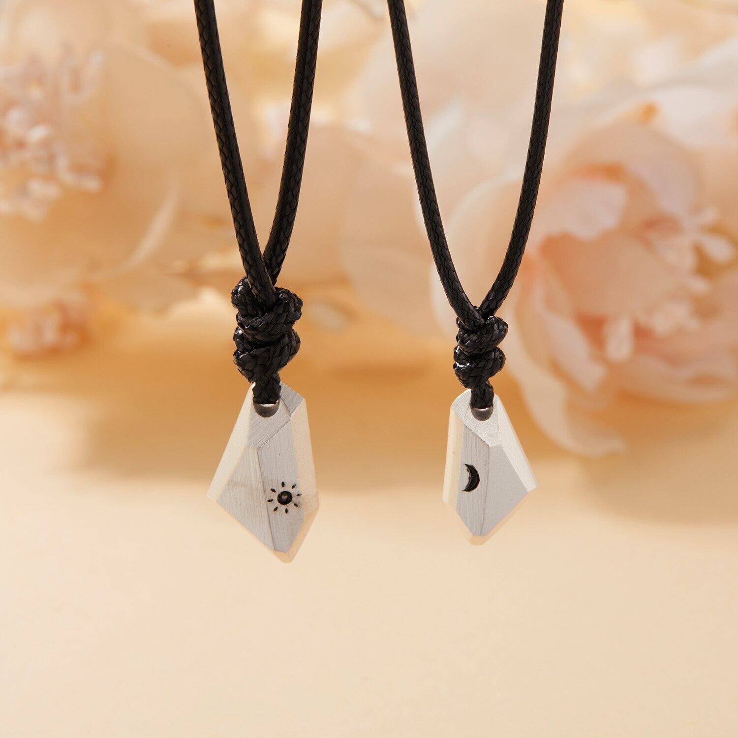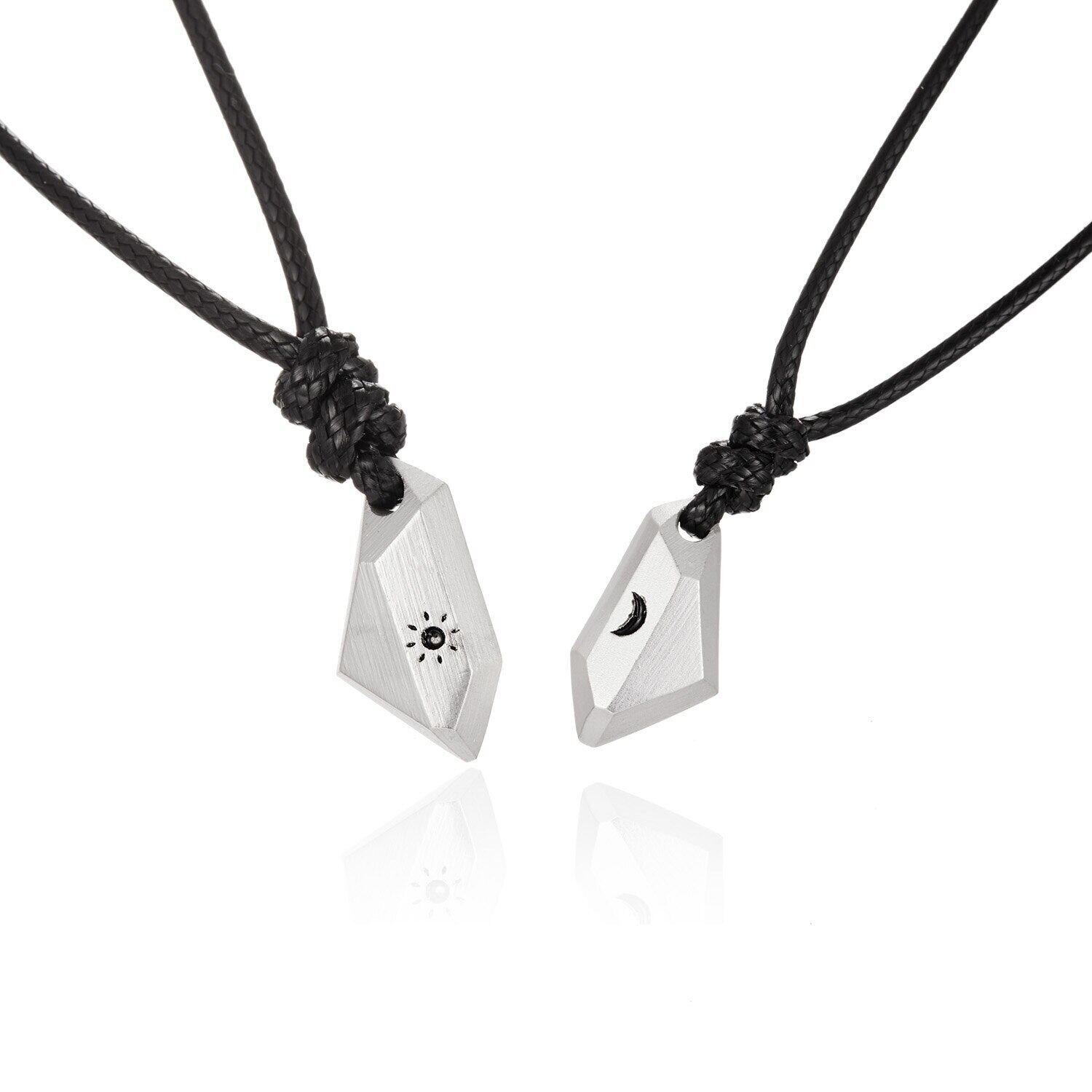 送料無料 2個ミニマリスト友情カップルネックレスホワイトウィッシングストーンサンムーンペンダントラバーディスタンスネックレスジュエリーアニバーサリーギフト レース アクセサリー AE888855490119923
