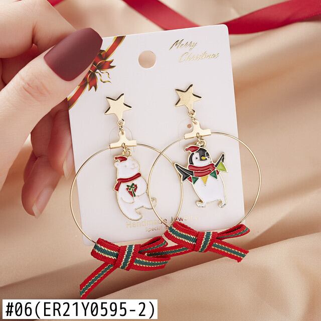 送料無料 Rinhooクリスマスサークルラウンドハート鹿エルクペンダントイヤリングピアスイヤーフックイヤリングジュエリー女性 指輪 アクセサリー AE888857964948606