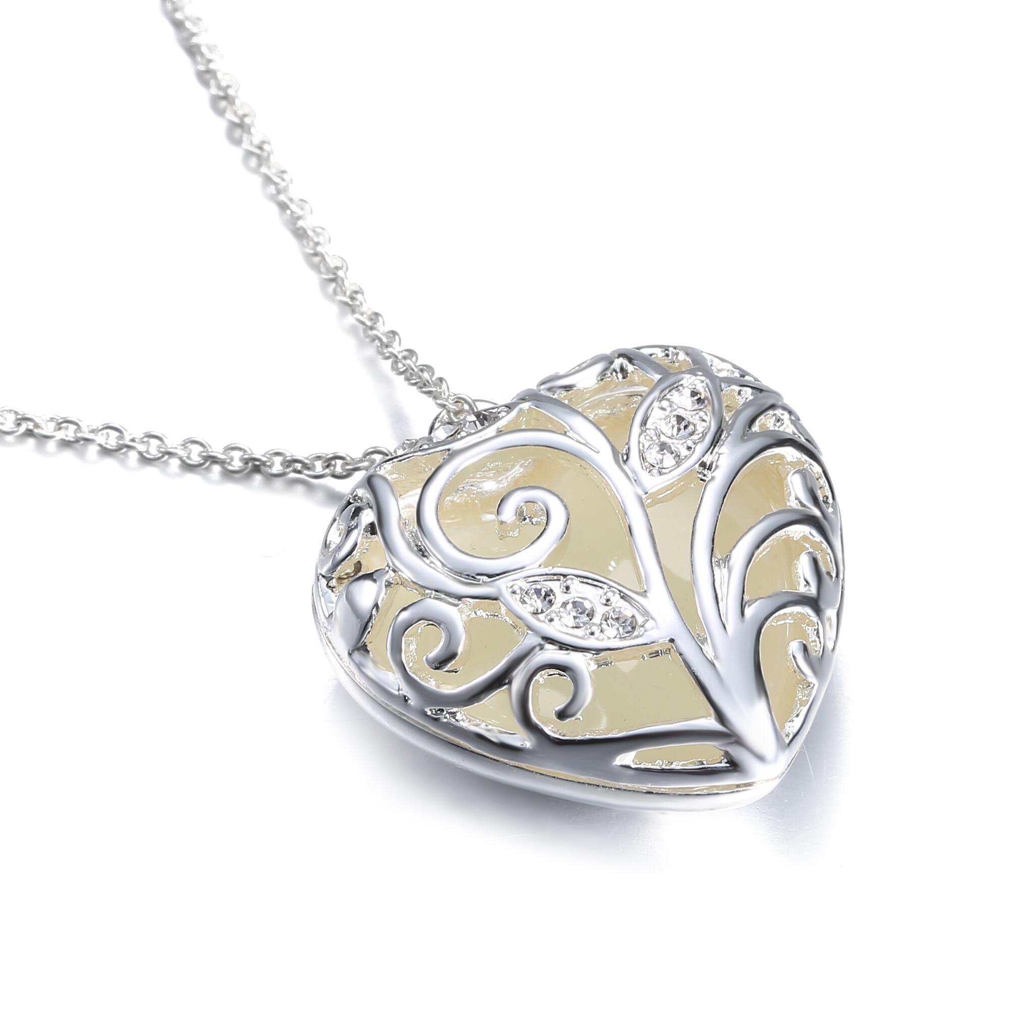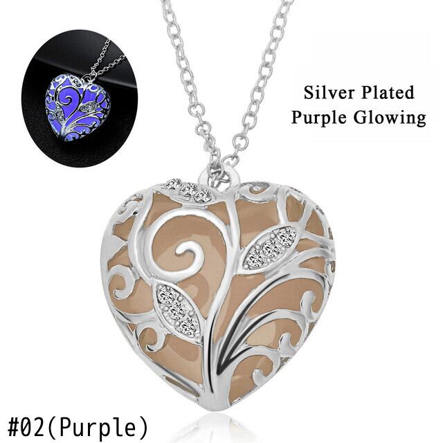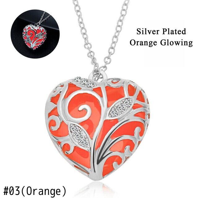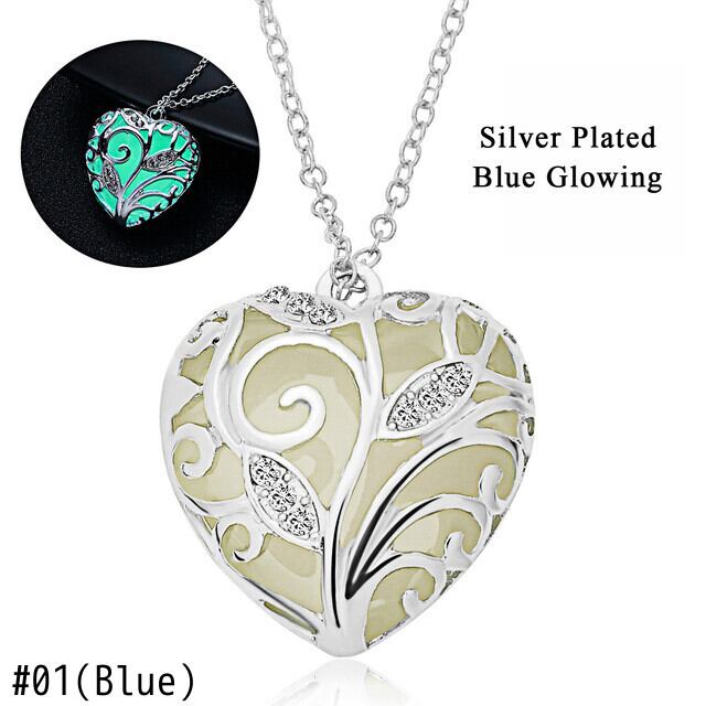送料無料 グローインザダークネックレス女性ホロウハートペンダントロケットルミナスストーンロングチェーンネックレスジュエリー レース アクセサリー AE888839411028211