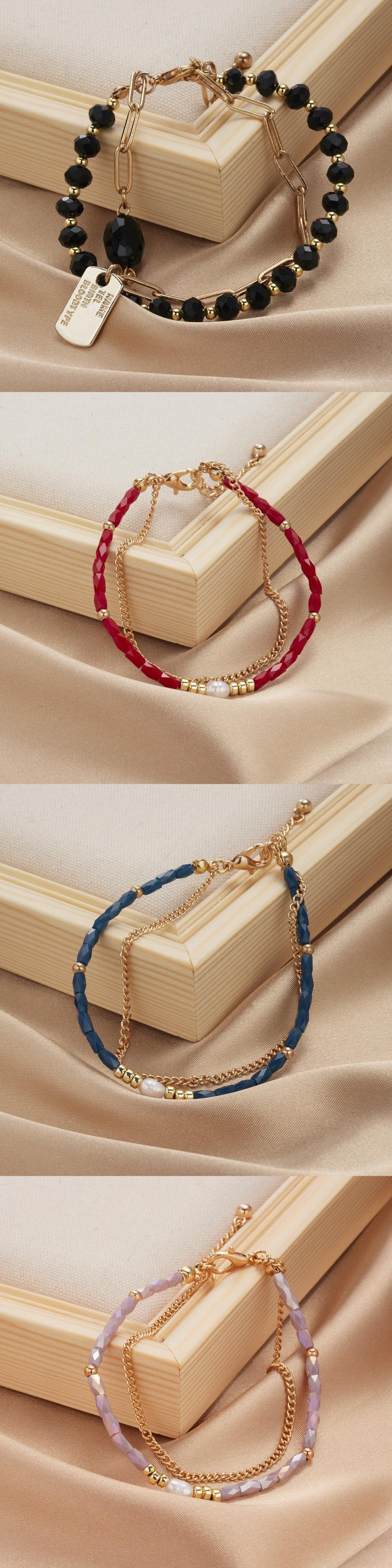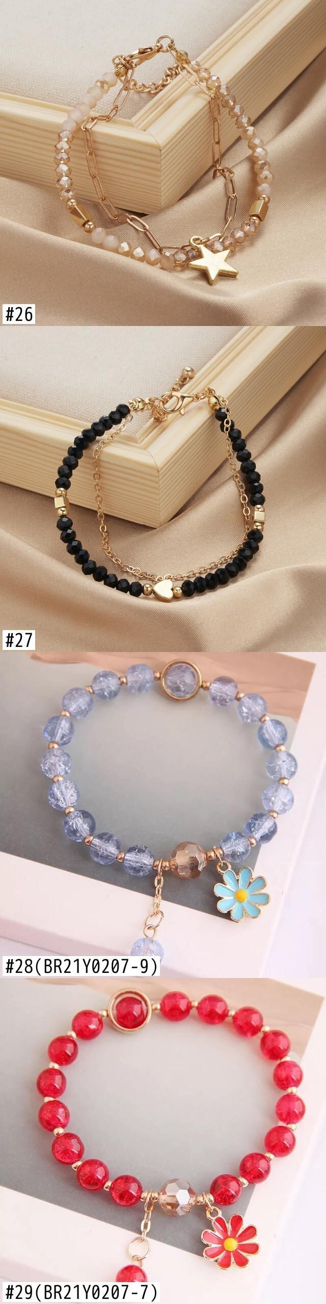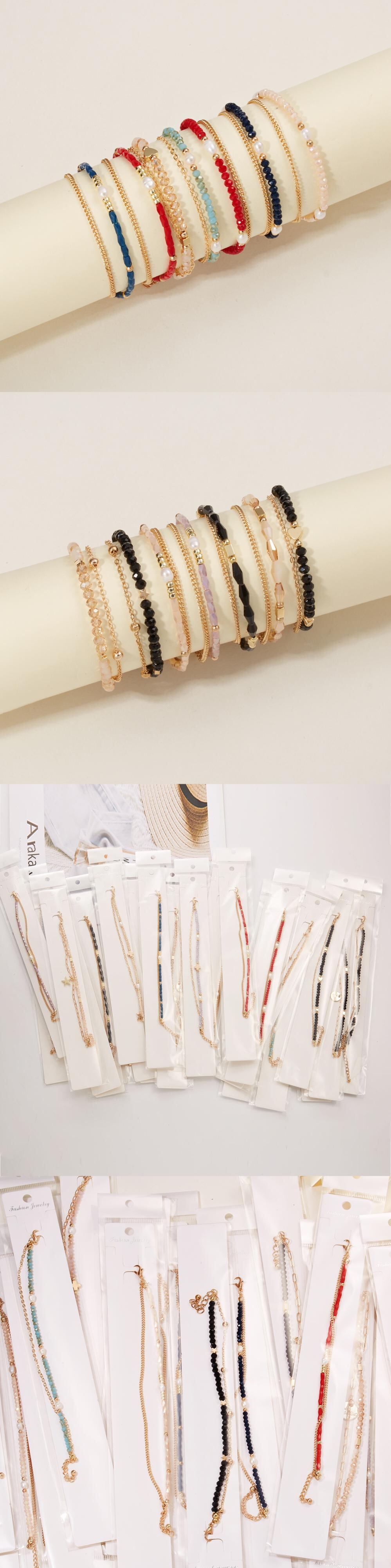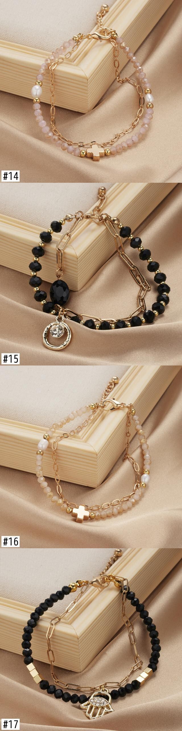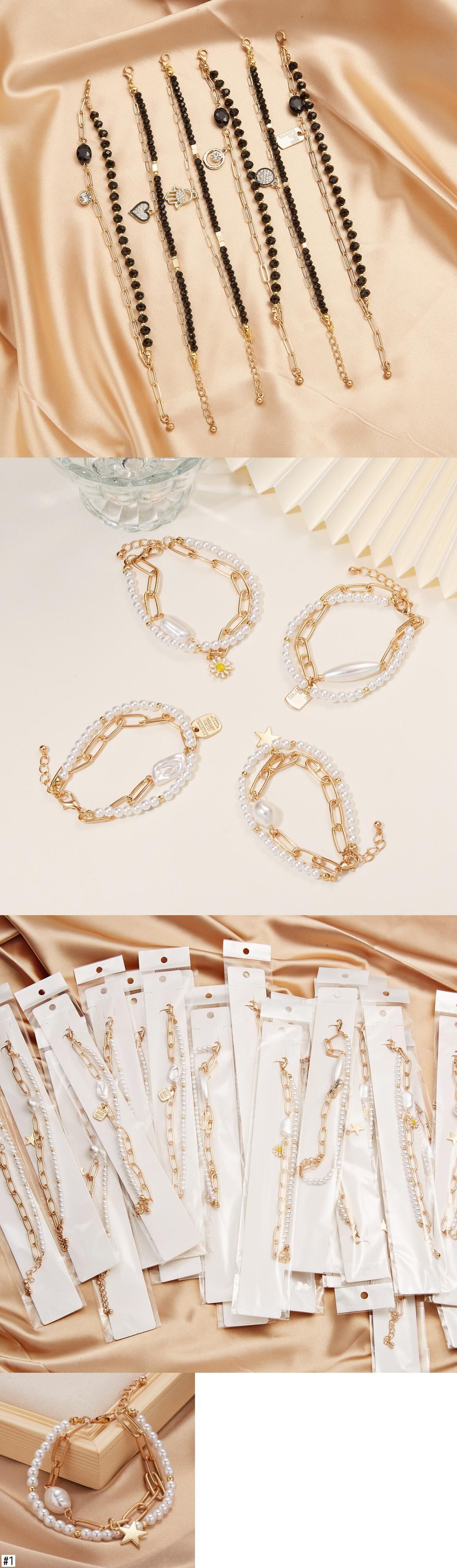 送料無料 多層不規則な模造真珠チャンキーチェーンスターフラワーペンダントブレスレット女性シンプルクリスタルビーズチャームブレスレット マルチレイヤー パール フラワーデザイン アクセサリー AE888819334769200