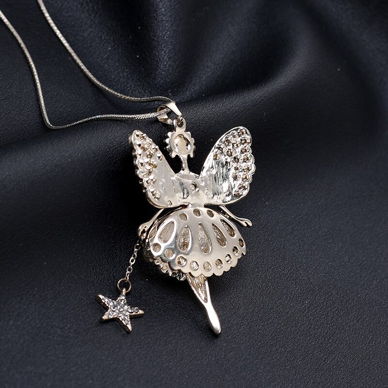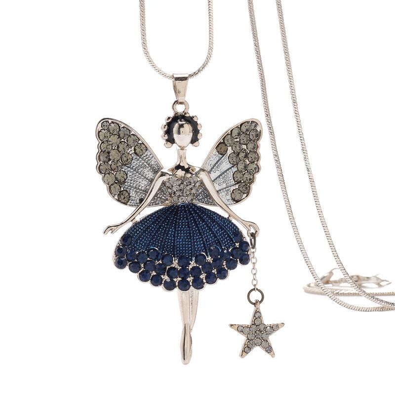 送料無料 エンジェルダンシングガールペンダントネックレス女性ラインストーンバレエガールロングチェーンネックレスウィンターセータージュエリーオーナメント レース 冬物 アクセサリー AE888890877124471