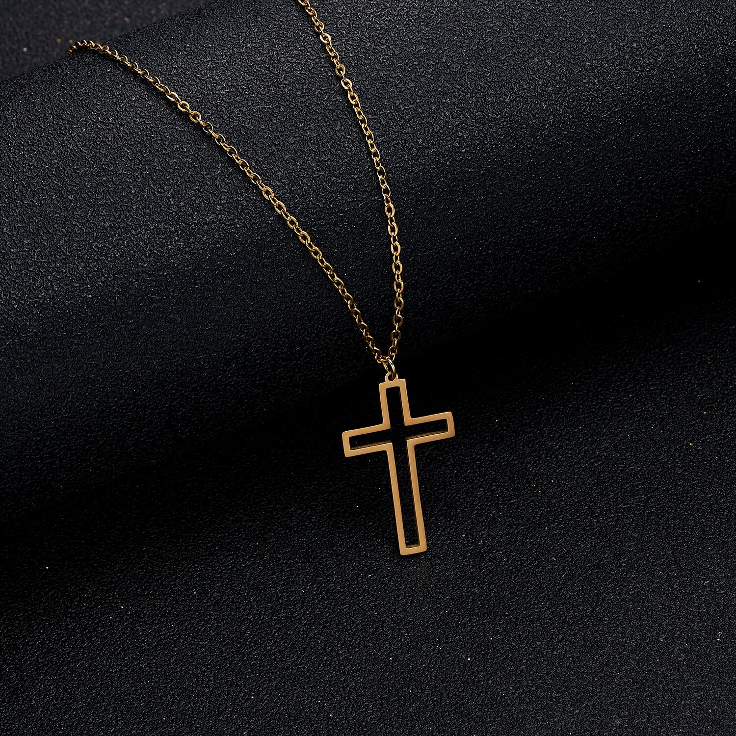送料無料 シンプルな中空クロスステンレス鋼ネックレス女性男性ショートチェーンネックレス宗教的なキリスト教の装飾品のジュエリーギフト レース アクセサリー AE888836636365697