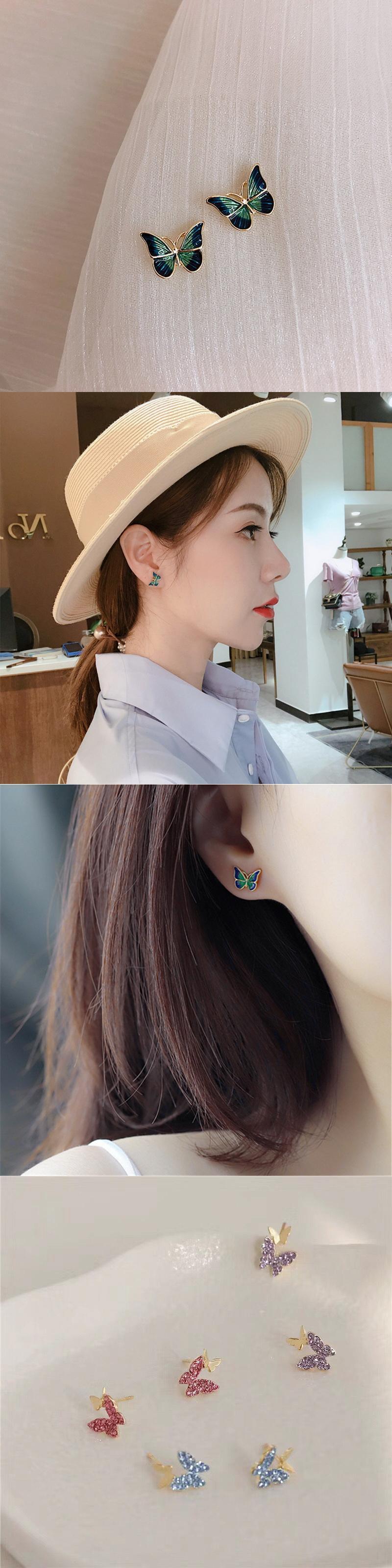 送料無料 かわいいラインストーンバタフライスタッドピアス女性の女の子2021甘いかわいい蝶イヤリングジュエリーギフト 大人ガーリー スウィート キュート カジュアル 指輪 アクセサリー AE888834307318047