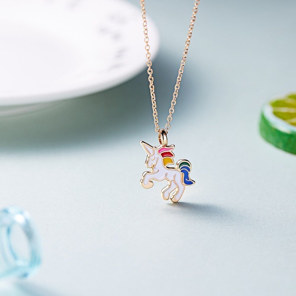 送料無料 ネックレス女の子子供子供エナメル漫画馬ジュエリーアクセサリー女性動物ネックレスペンダントパーティー レース キッズ アクセサリー AE888895412960334