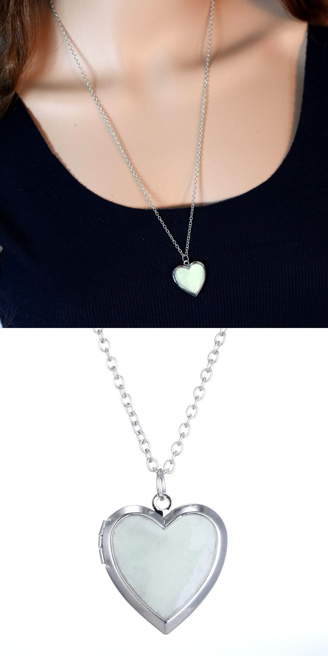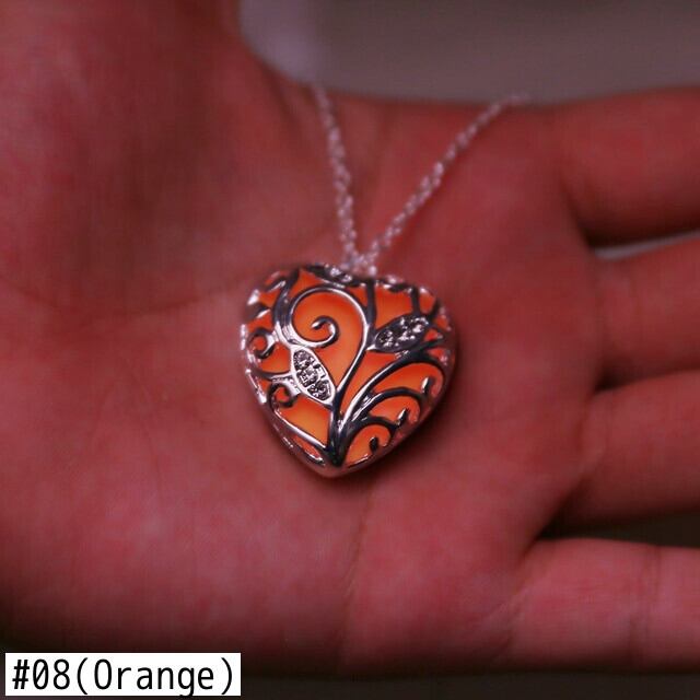 送料無料 暗闇で光るネックレス女性ポーロケットヴィンテージ蛍光ハートネックレスペンダントジュエリーフローティングチャームギフト レース ビンテージ アクセサリー AE88889411618006