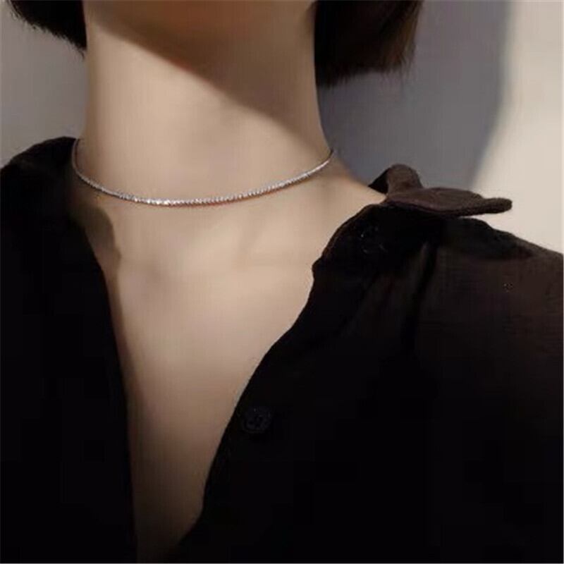 送料無料 2021年女性シンプルシルバーカラーチョーカーネックレスミニマリストクラビクルチェーン花嫁花婿結婚式の婚約ジュエリーカップル レース 銀 アクセサリー AE888816444311652