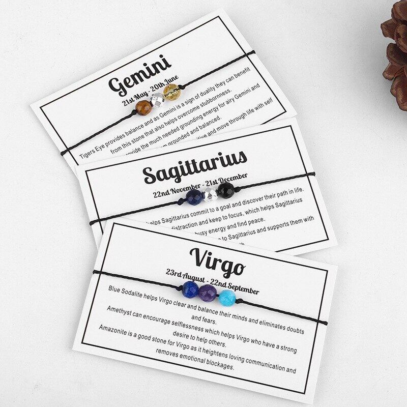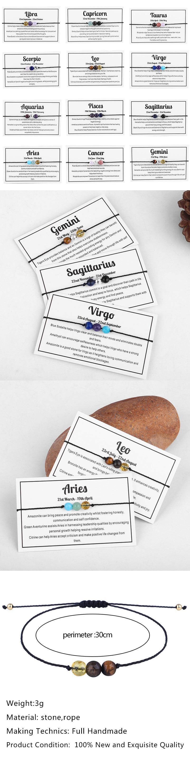 送料無料 12ゾディアックサイン星座ブレスレット女性手作りストーンビーズブラックロープチャームブレスレット友情誕生日ジュエリーギフト アクセサリー AE888819680061444
