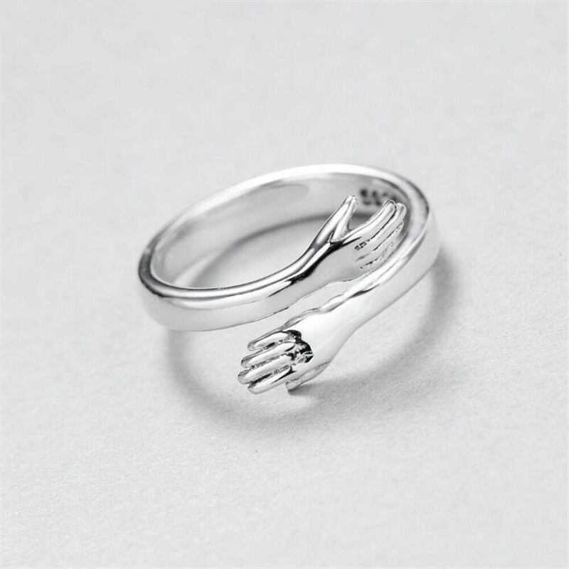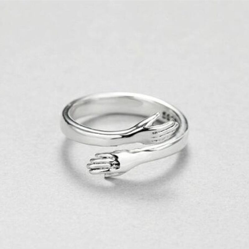 送料無料 ヴィンテージシルバーメッキラブハグリングレディースレトロシンプルフィンガーリングユニセックスアジャスタブルタイドフローオープンアニロスジュエリーギフト 指輪 銀 ビンテージ アクセサリー AE88889539318456