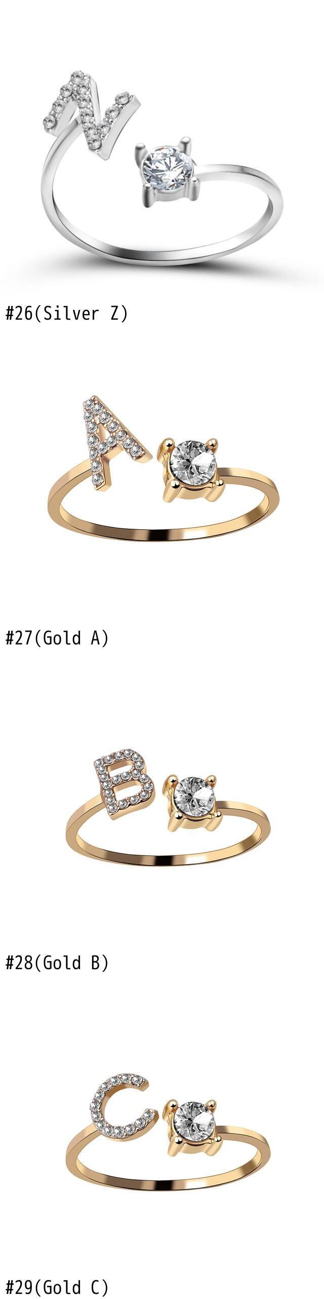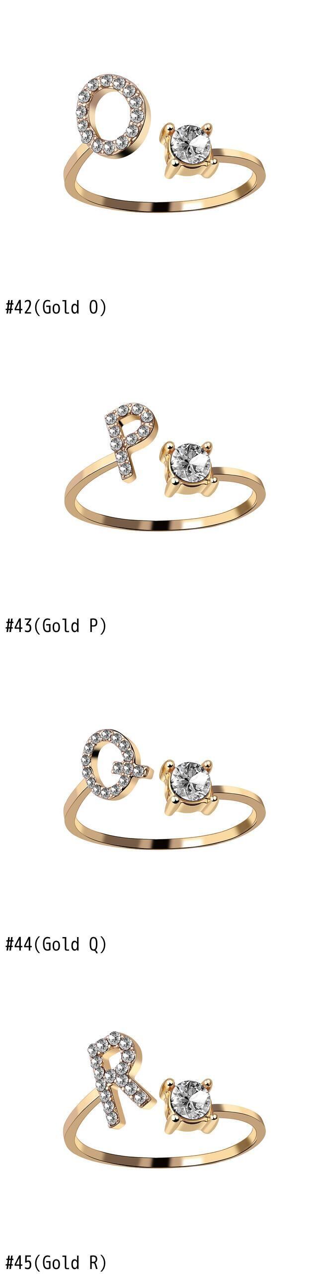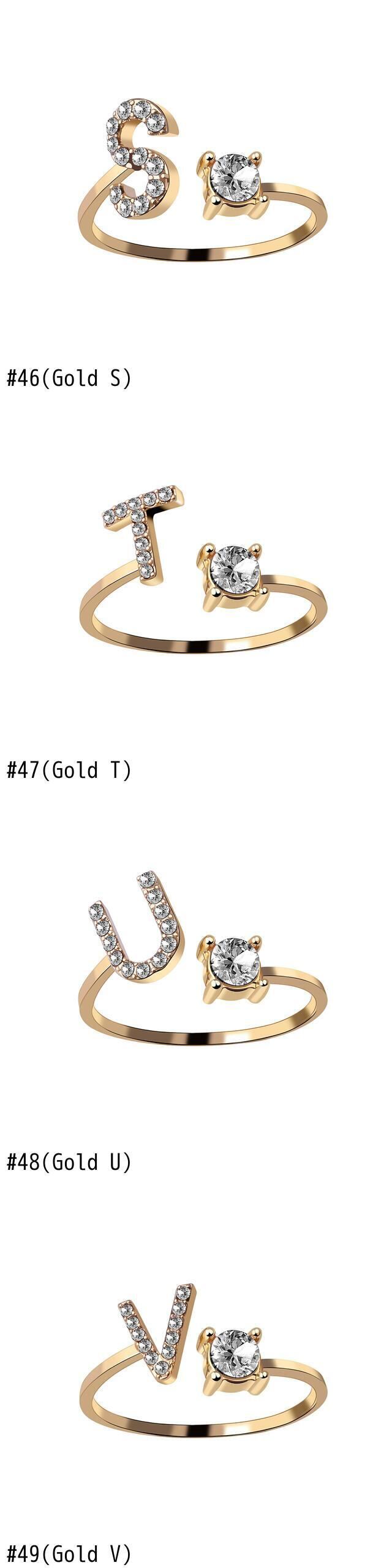 送料無料 1PCシャイニングラインストーンモザイク26文字イニシャルリングオープニングカフリング女性チャームジュエリーギフト 指輪 アクセサリー AE888814660108717