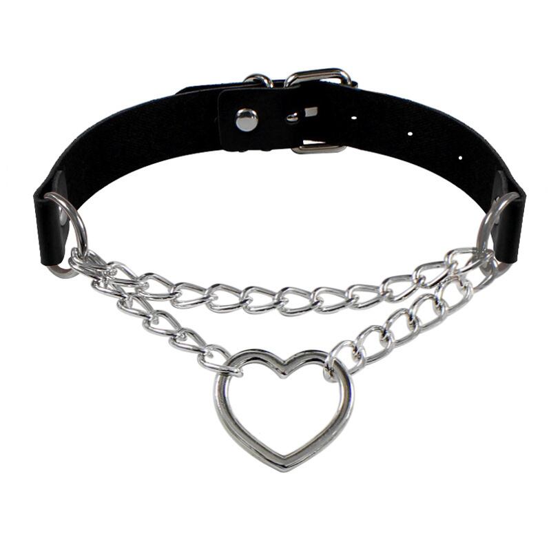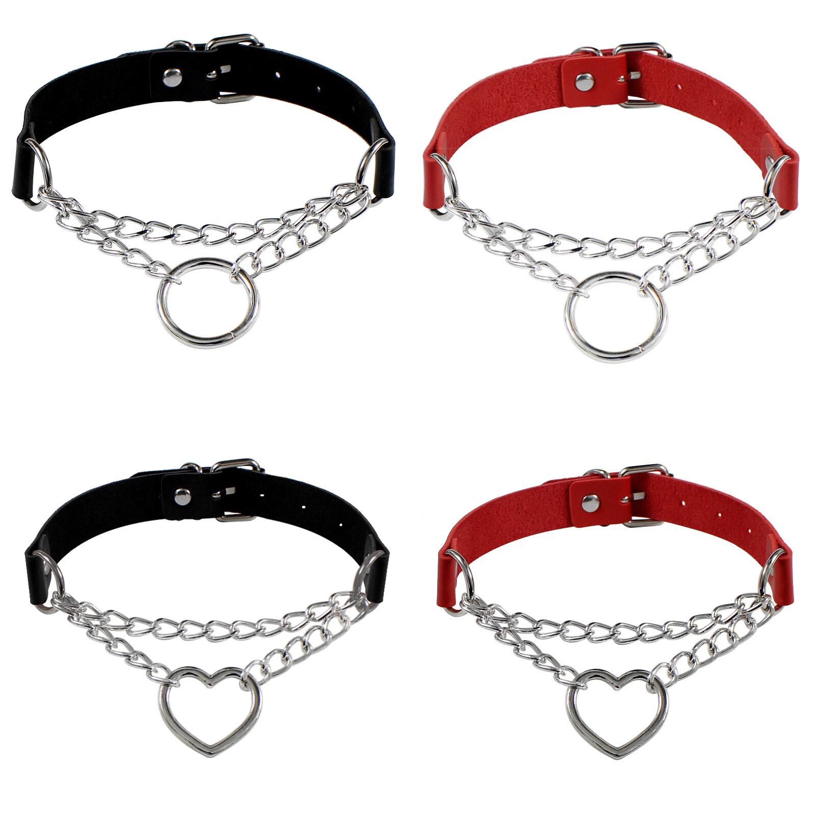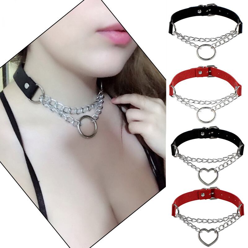 送料無料 2021パンクゴシックPUレザーサークルハートペンダントチョーカーチェーンネックレス女性レッドブラックカラー幾何学的なダングルカラージュエリー レース アクセサリー AE888894513689850