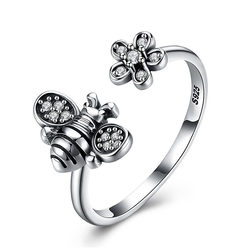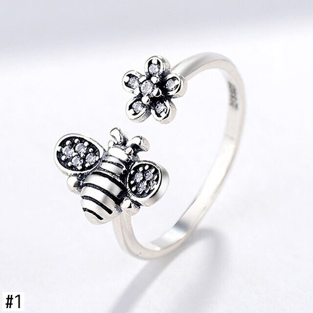 送料無料 ボヘミアヴィンテージシルバーカラーかわいい蜂フラワーリング女性トンボひまわりオープニング調節可能なリングジュエリー 大人ガーリー スウィート キュート カジュアル アジャスタブル 指輪 フラワーデザイン 銀 ビンテージ アクセサリー AE888850640596506