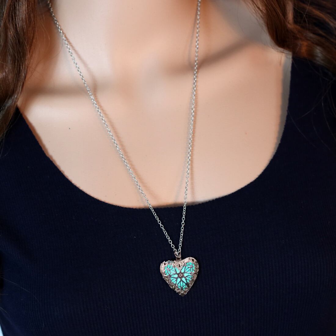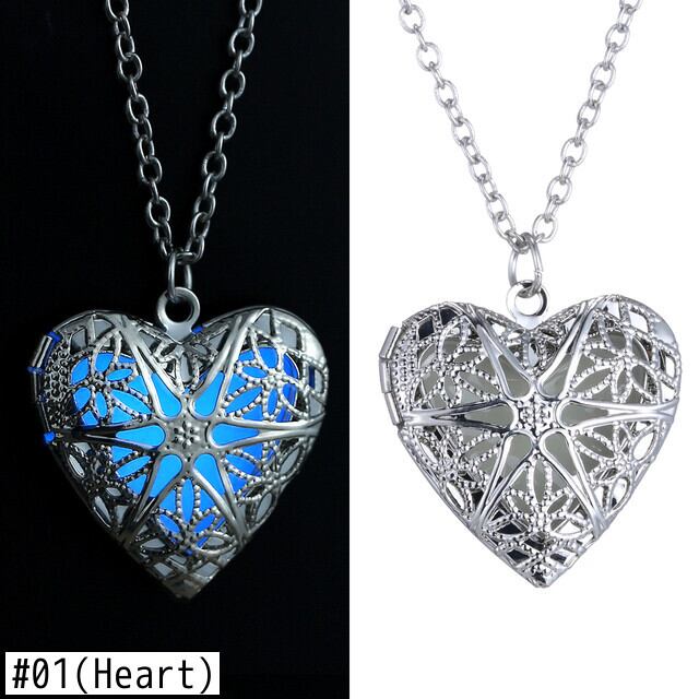 送料無料 ヴィンテージ蛍光ハートラウンドペンダントネックレス暗闇で光るポーロケットネックレス女性ジュエリーフローティングチャームギフト レース ビンテージ アクセサリー AE88882259568629