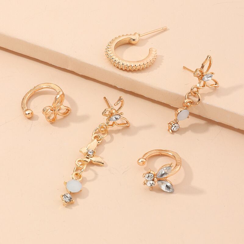 送料無料 シャインラインストーンバタフライピアススタッドピアスイヤークリップ女性2022昆虫イヤーカフセットガールパーティージュエリー イヤリング リング 指輪 アクセサリー AE888885345123686