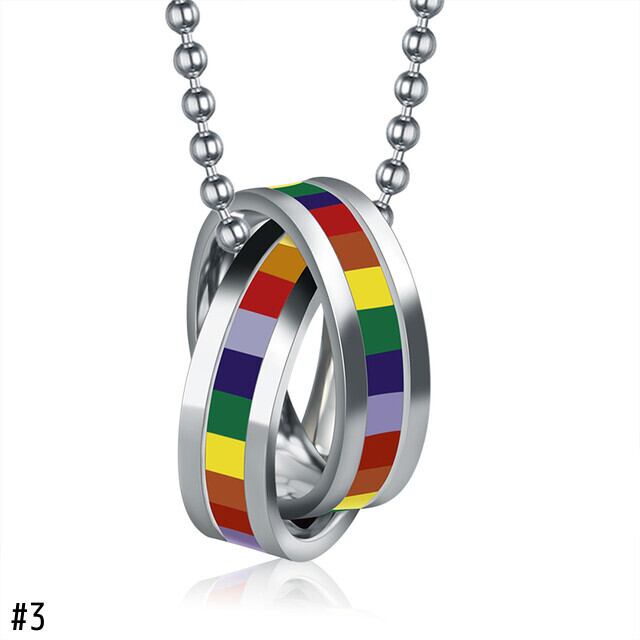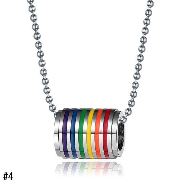 送料無料 Rinhooステンレス鋼レズビアンゲイプライドLGBTペンダントネックレス男性女性レインボーチャームネックレスジュエリー レース アクセサリー AE888871649363420