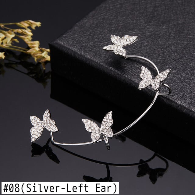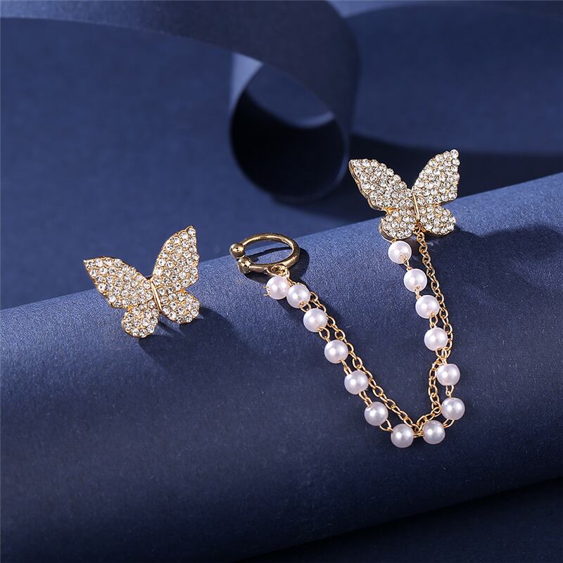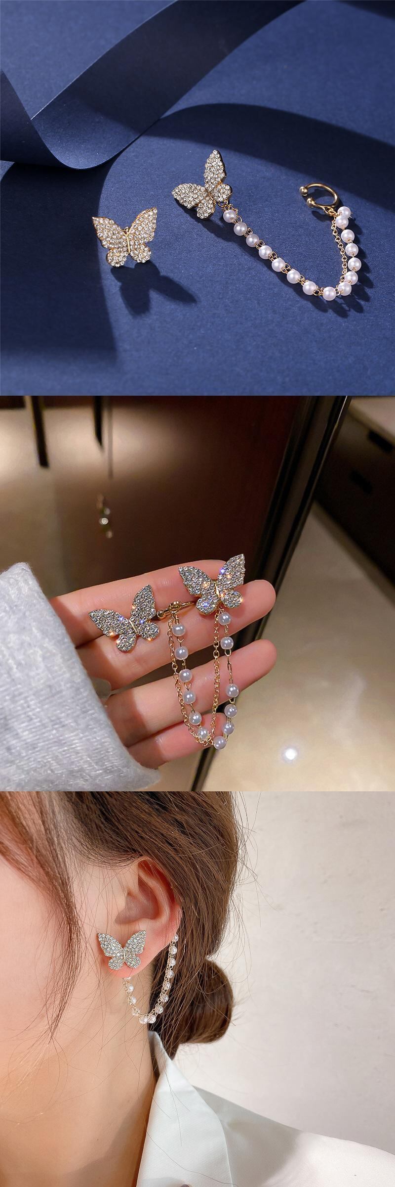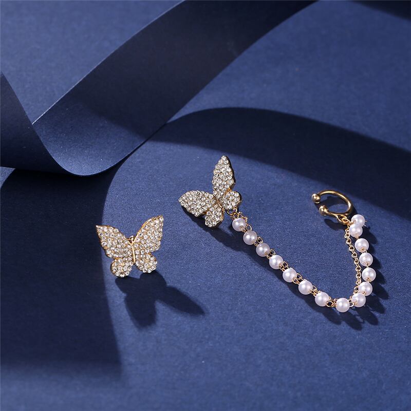 送料無料 トレンド非対称クリスタルバタフライイヤリング女性シャインラインストーンロングチェーンピアスピアスパーティージュエリーギフト 指輪 アクセサリー AE888866636824172