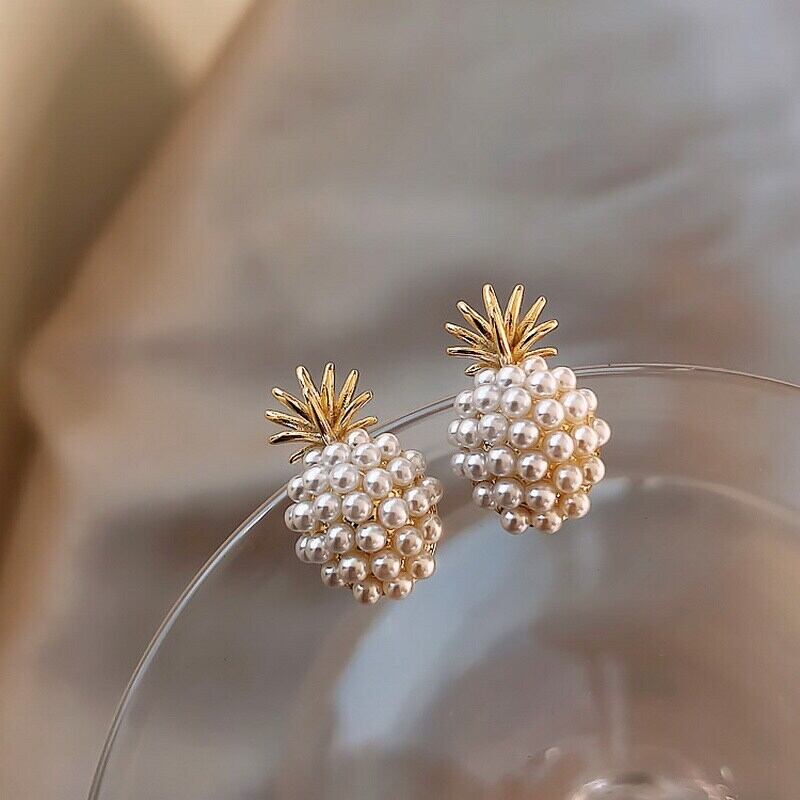 送料無料 2021年女性の絶妙なパイナップルパールピアス小さなハニービースタッドピアス気質ジュエリー イヤリング 真珠 リング 指輪 アクセサリー AE888887656176694