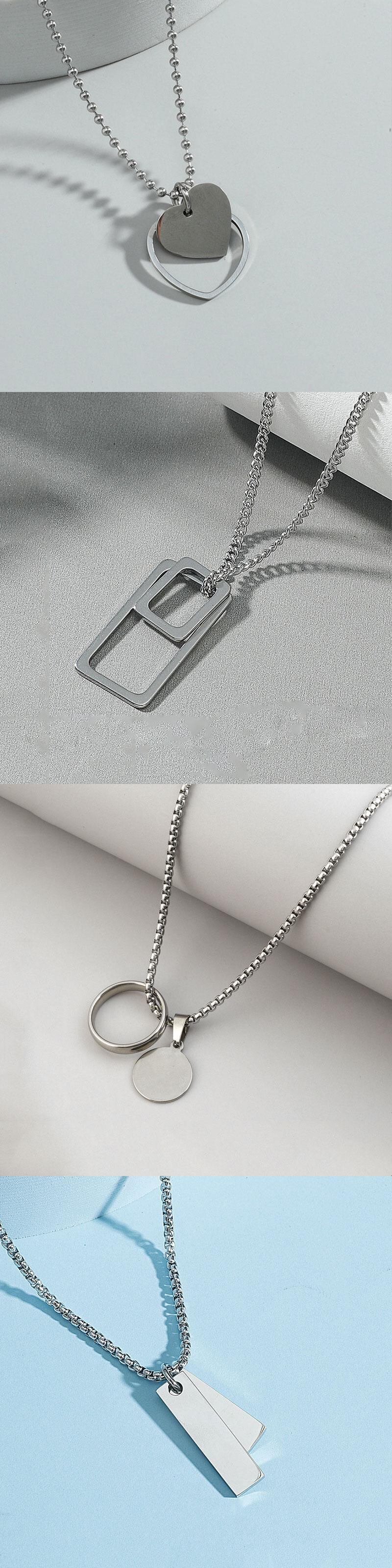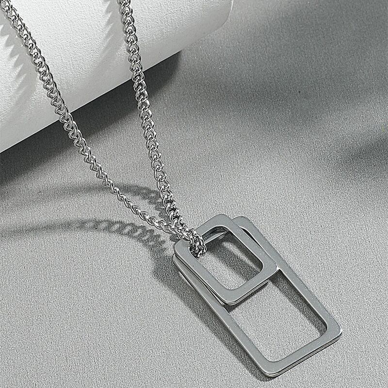 送料無料 ステンレス鋼のネックレス女性男性シンプルなロングチェーン幾何学的な長方形のペンダントネックレスステートメントカップルジュエリーギフト レース アクセサリー AE888897939902350