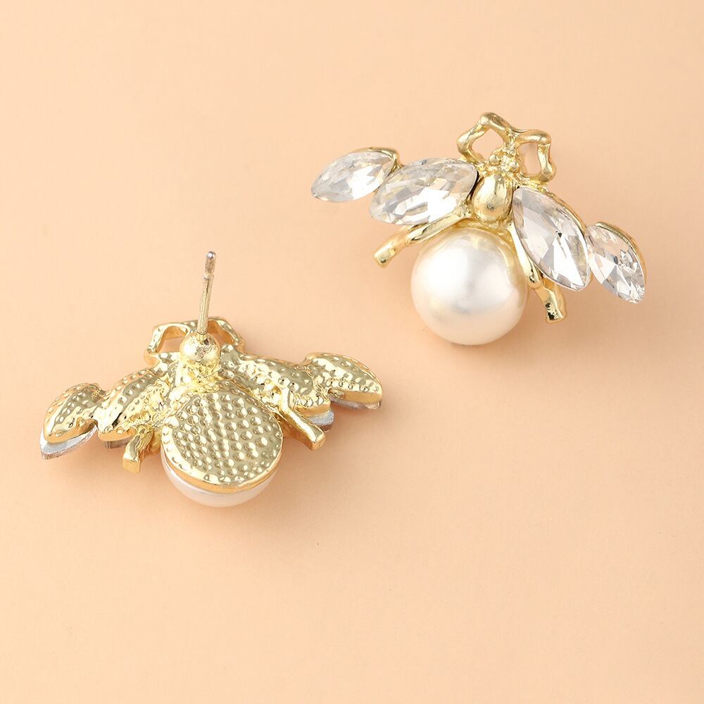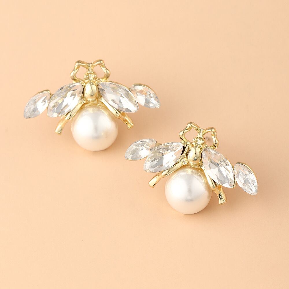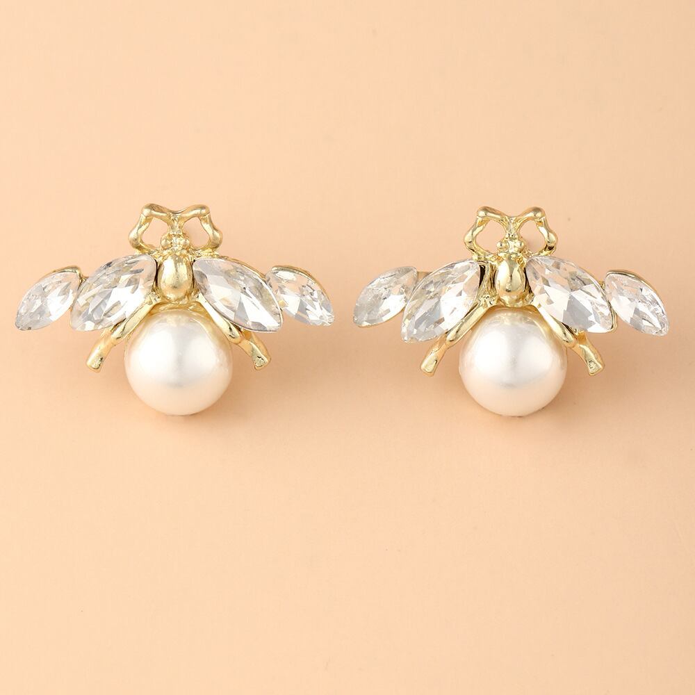 送料無料 Clicシミュレートされたパールビースタッドピアス女性繊細な動物昆虫ミツバチイヤリング女の子チャームパーティーウェディングジュエリー 真珠 指輪 人工 アクセサリー AE888874602392640