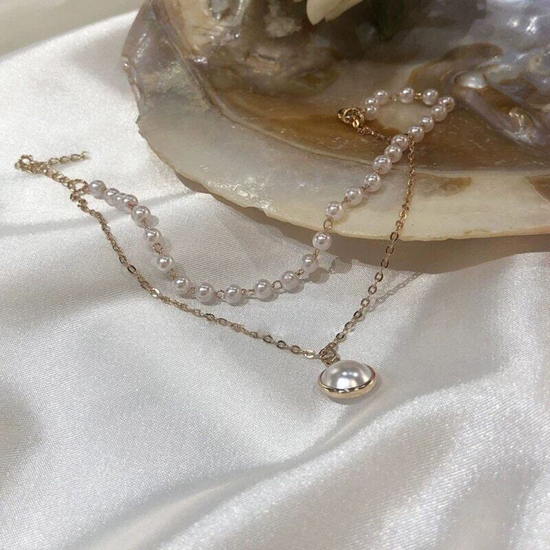 送料無料 シンプルな多層シミュレーションパールブレスレット女性イン気質スウィートペンダントブレスレットジュエリーアクセサリーギフト 大人ガーリー キュート カジュアル マルチレイヤー 真珠 人工 アクセサリー AE888891110477197