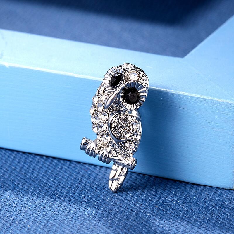 送料無料 リンフーシルバーカラーフクロウオウムアニマルブローチレディースメンズデイリーサプライラインストーンジルコンブローチピンジュエリー 銀 アクセサリー AE888820137988053