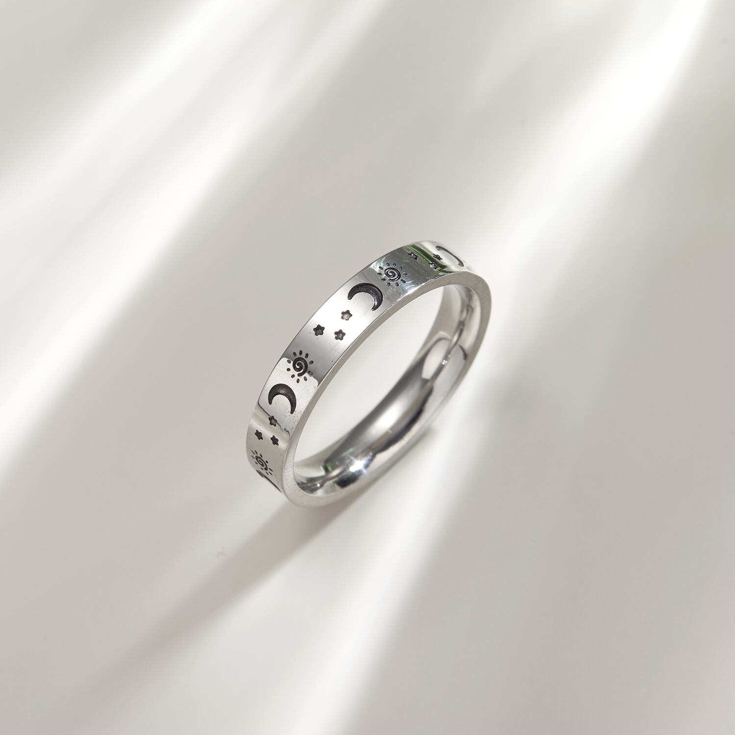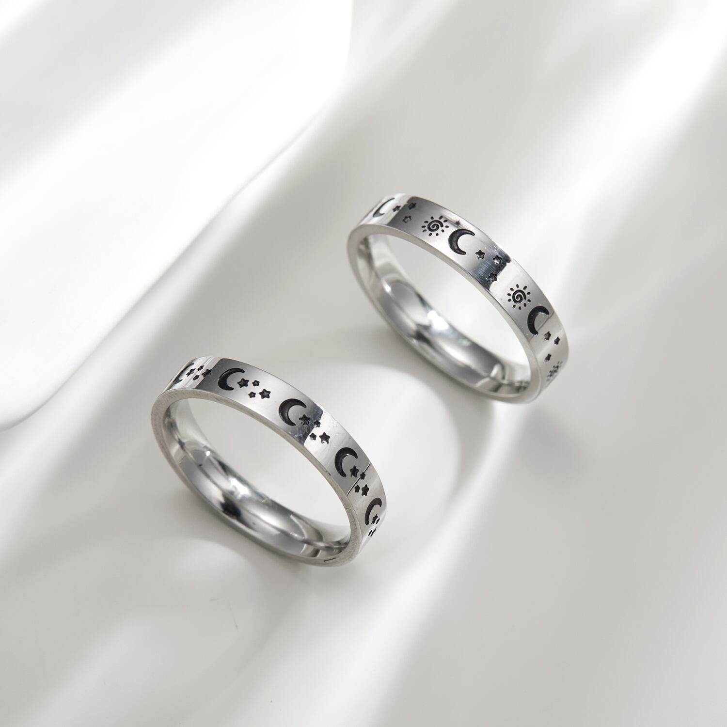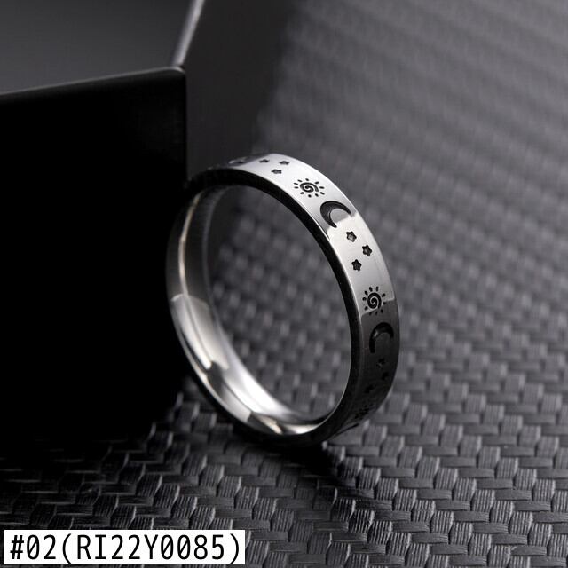 送料無料 ステンレス鋼のカップルリング女性男性シルバーカラーサンスタームーンパターンリング結婚記念日ジュエリーギフト 指輪 銀 アクセサリー AE888897411226991