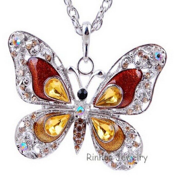 送料無料 バタフライネックレスバタフライジュエリー秋のアクセサリー人気ヒップエナメルクリスタルバタフライペンダントロングネックレスチェーン女性 レース オータム 秋物 アクセサリー AE888849991501062