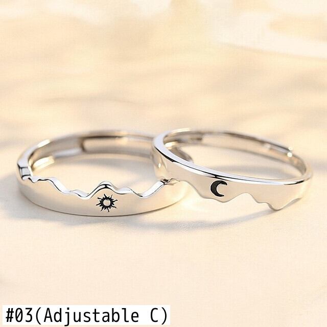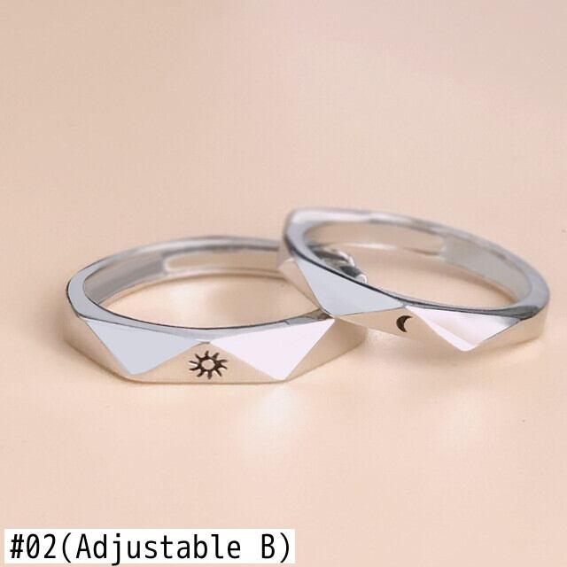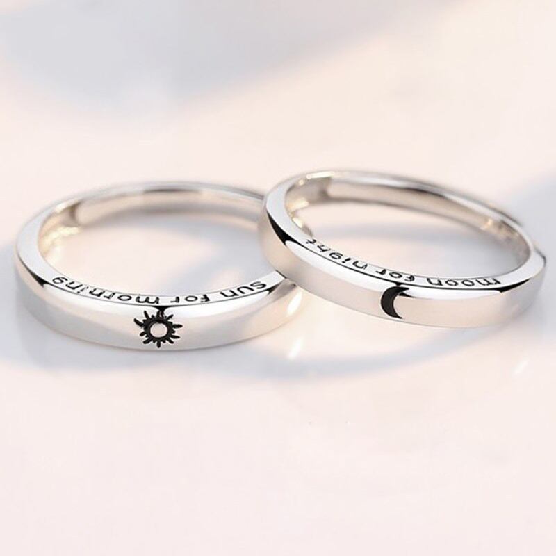 送料無料 2個の手紙太陽の月の恋人のカップルリングシンプルなオープニングリングカップルの結婚式の婚約の約束バレンタインデーのジュエリー 指輪 アクセサリー AE888815167640131
