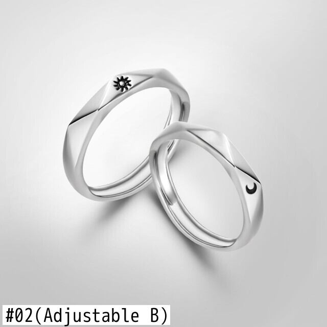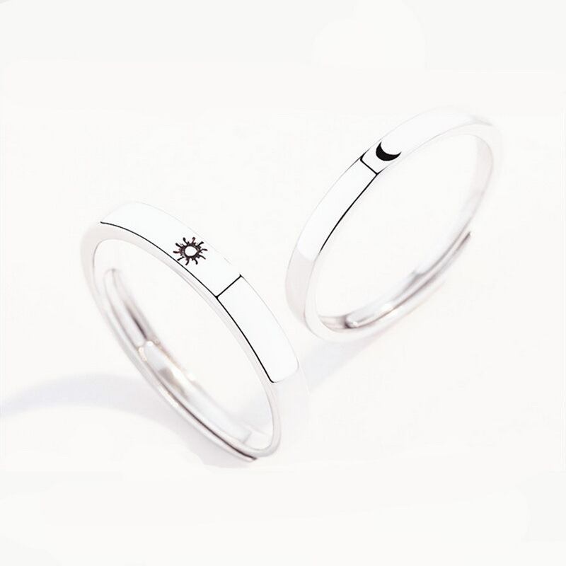 送料無料 2ピース/セットシルバーカラーカップルリングウェディング花嫁花婿ジュエリーサンムーンリングアニバーサリーベストフレンズ 指輪 銀 アクセサリー AE888857346429402