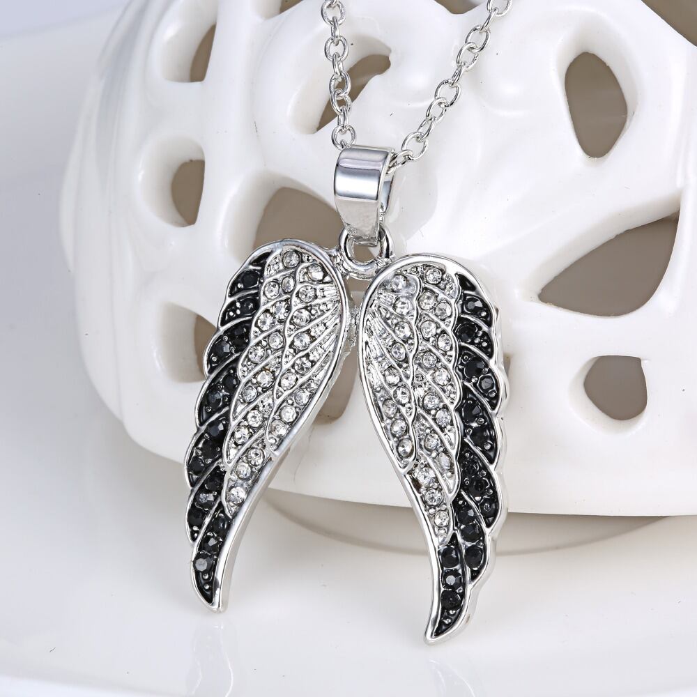 送料無料 エンジェルのクリスタルウィングネックレス女性のウェディングペンダントチェーンジュエリーギフトブラックシルバーカラーウィング レース 銀 アクセサリー AE888820511675657
